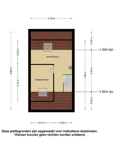 Aan de voorkant van de zolder is recent een 4e slaapkamer gerealiseerd met een nieuw kunststof dakraam en een verduisterend rolgordijn. Van de open ruimte aan de achterzijde van de zolder kan eenvoudig een 5e slaapkamer gemaakt worden en het dakraam kan eventueel vervangen worden door een dakkapel.