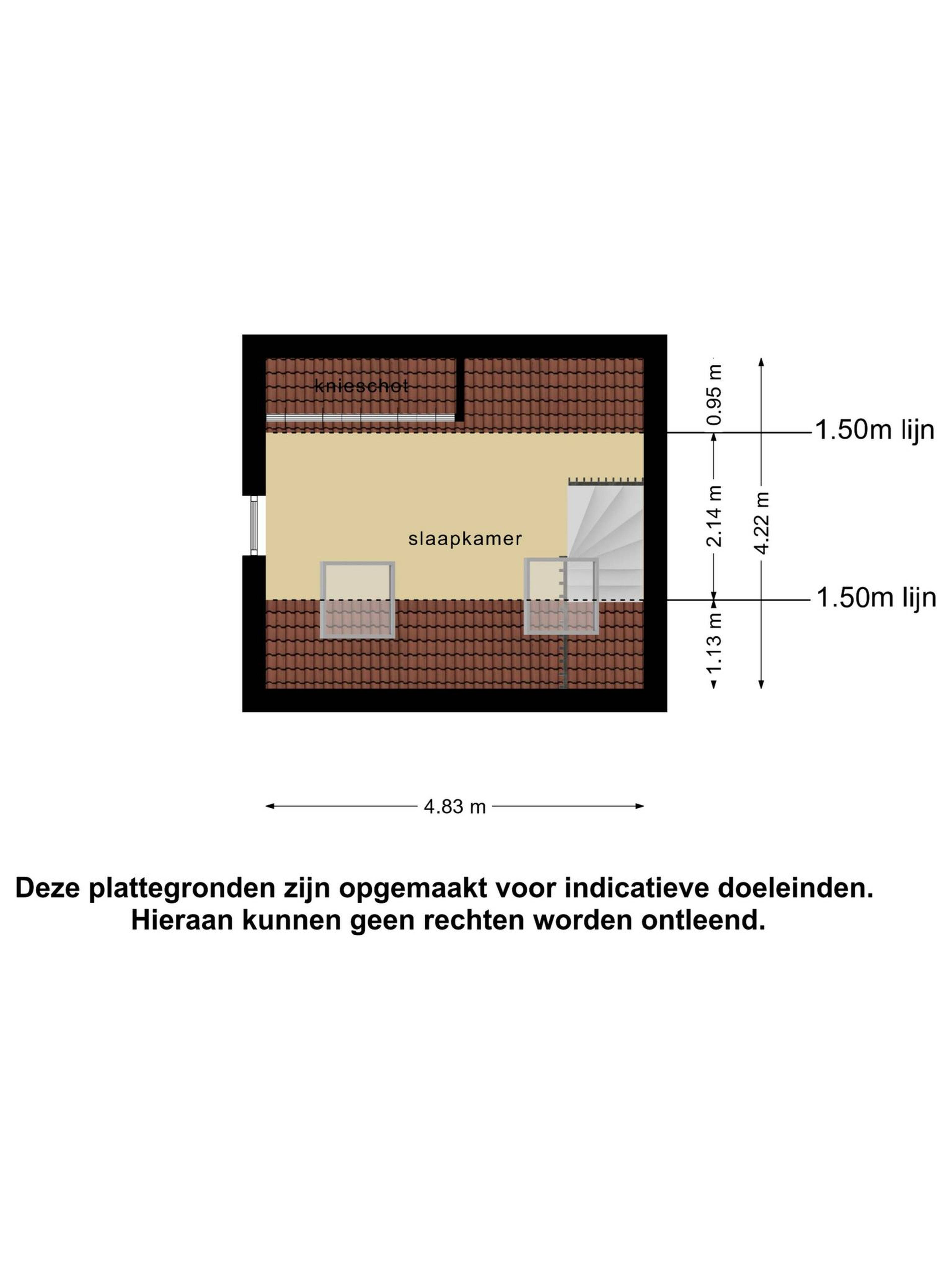Op de bovenste verdieping is de royale slaapkamer gelegen die voorzien is van dezelfde fraaie houten vloer als beneden. Deze kamer heeft een hele leuke uitstraling en is heerlijk licht door de 2 dakramen en een klein rond raampje in de kopgevel. Aan de rechterzijde is een handig verrijdbaar kastensysteem.