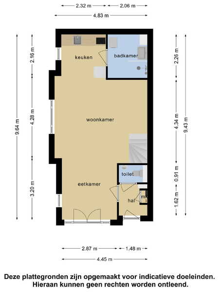 Via de galerij op de 1e verdieping bereikt u de entree van de woning op de hoek van het complex. In de hal bevinden zich de garderobe, de meterkast en het toilet.
