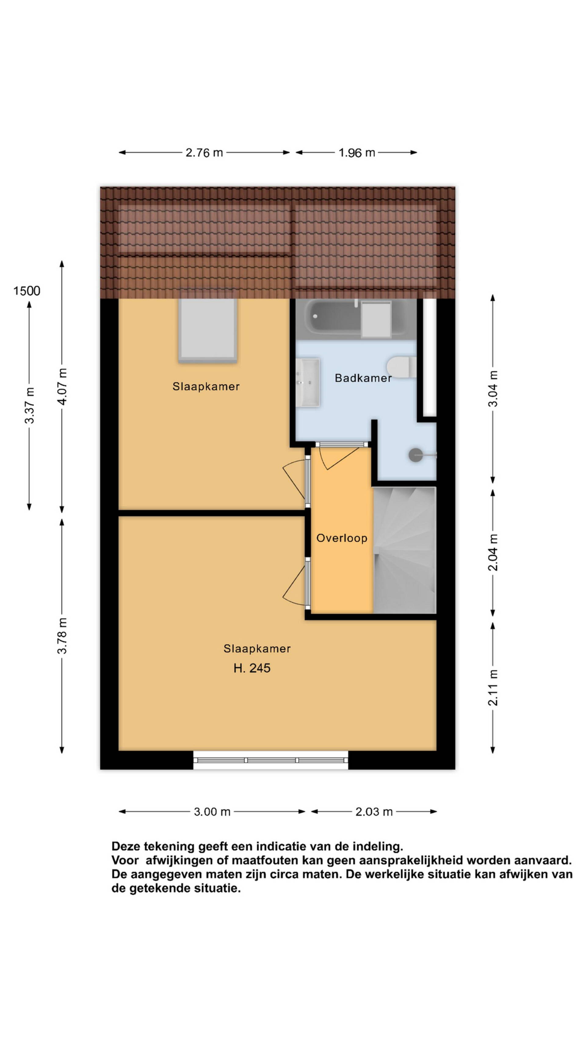 1e verdieping: op de 1e verdieping zijn 2 (voorheen 3) slaapkamers gesitueerd. De slaapkamers zijn keurig afgewerkt met laminaatvloeren. Het geheel maakt een zeer verzorgde indruk. Alle slaapkamers hebben zo hun speelse details. De slaapkamer aan de voorzijde is extra groot. U kunt hier weer eenvoudig 2 slaapkamers creëren.