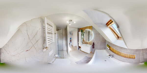 De ruime luxe badkamer is betegeld in een lichte kleurstelling. De badkamer is voorzien van een kunststof ligbad, inloopdouche, een wastafelmeubel en een hangcloset. Uiteraard ontbreekt in deze badkamer de design-radiator niet. Voor het bergen van uw spulletjes heeft u een extra kast tot uw beschikking.