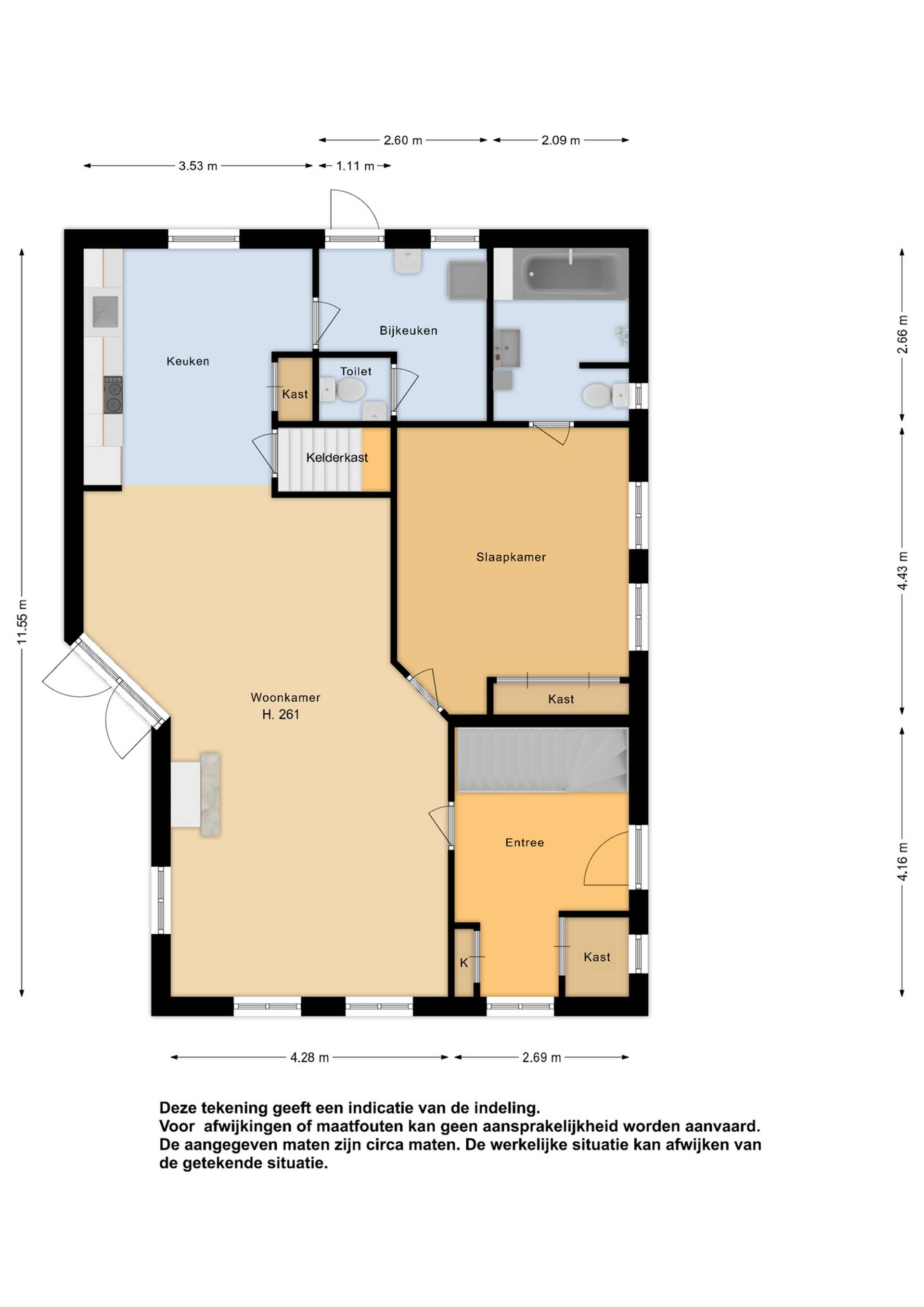 Slaapkamer parterre: op de parterre heeft u de beschikking over een ruime slaapkamer. Deze kamer is voorzien van een vaste kastenwand. Vanzelfsprekend kunt u deze kamer ook als werkkamer of kantoor/praktijkruimte gebruiken. Eventueel kunt u ook de ruimte bij de woonkamer betrekken om op deze wijze een extra grote woonkamer te creëren. Aansluitend aan de slaapkamer is de badkamer parterre te bereiken. U kunt deze woning dus ook gelijkvloers bewonen!