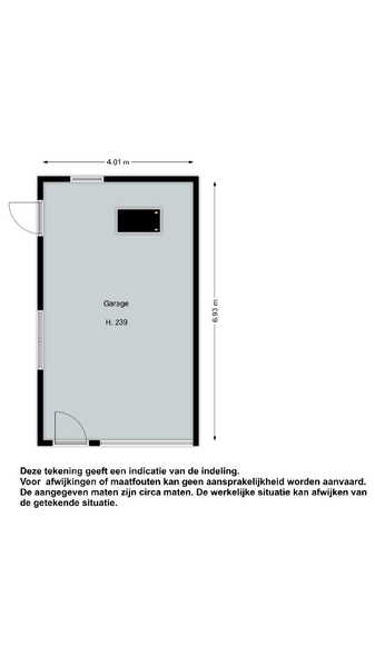 Garage: de garage heeft ruime afmetingen en is aan de voorzijde voorzien van een sectionaaldeur. Zowel aan de voorzijde als de zijkant heeft u een extra loopdeur tot uw beschikking. Het is een heerlijke klusplek en u kunt met gemak uw auto, (motor-) fietsen en gereedschappen bergen. U heeft in deze klusruimte ook veel daglicht tot uw beschikking. De garage is uitgevoerd met een betonvloer.