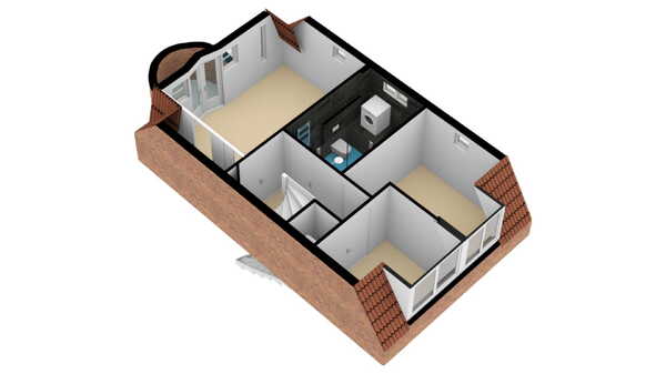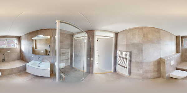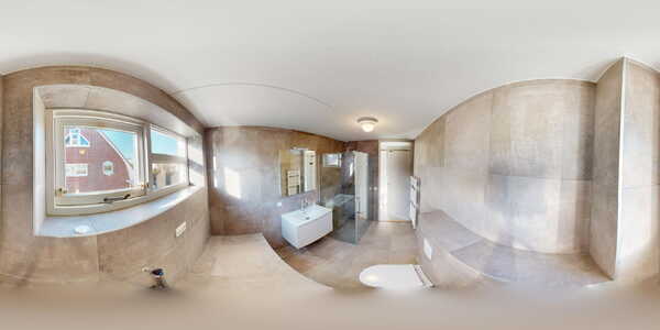 De ruime en luxe badkamer is in een moderne kleurstelling uitgevoerd en voorzien van een ruime inloopdouche met regendouche, wastafelmeubel en hangcloset. De ruimte is volledig betegeld en ook voorzien van een elektrische designradiator. Het is een ware relaxruimte! Op de verhoging in de badkamer kunt u ook prima uw wasmachine en/of droger een plaatsje geven. Uiteraard kunt u uw wasmachine opstelling ook op de 2e etage kwijt.