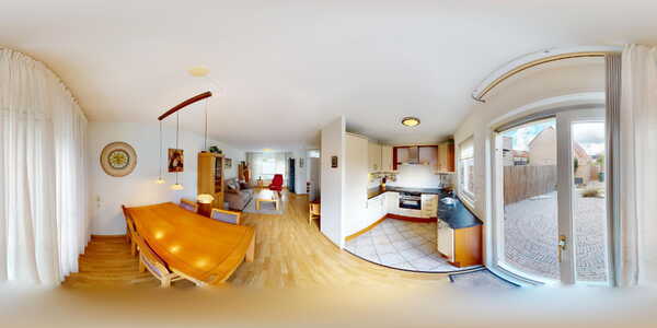 Vanuit de hal kunt u de L-vormige woonkamer bereiken. Door de grote raampartij aan de voorzijde van de woning heeft u veel lichtinval in de woning. U heeft hier de mogelijkheid om een lekkere loungebank te plaatsen. Vanuit de bank heeft u dan fijn zicht op de straat aan de voorzijde. Halverwege de woonkamer is een vaste kast aanwezig. Ideaal om als een extra opbergruimte te gebruiken. Aan de achterzijde van de woning treft u naast de open keuken, ook een schuifpui aan wat een fijne overgang naar de tuin verzorgd.