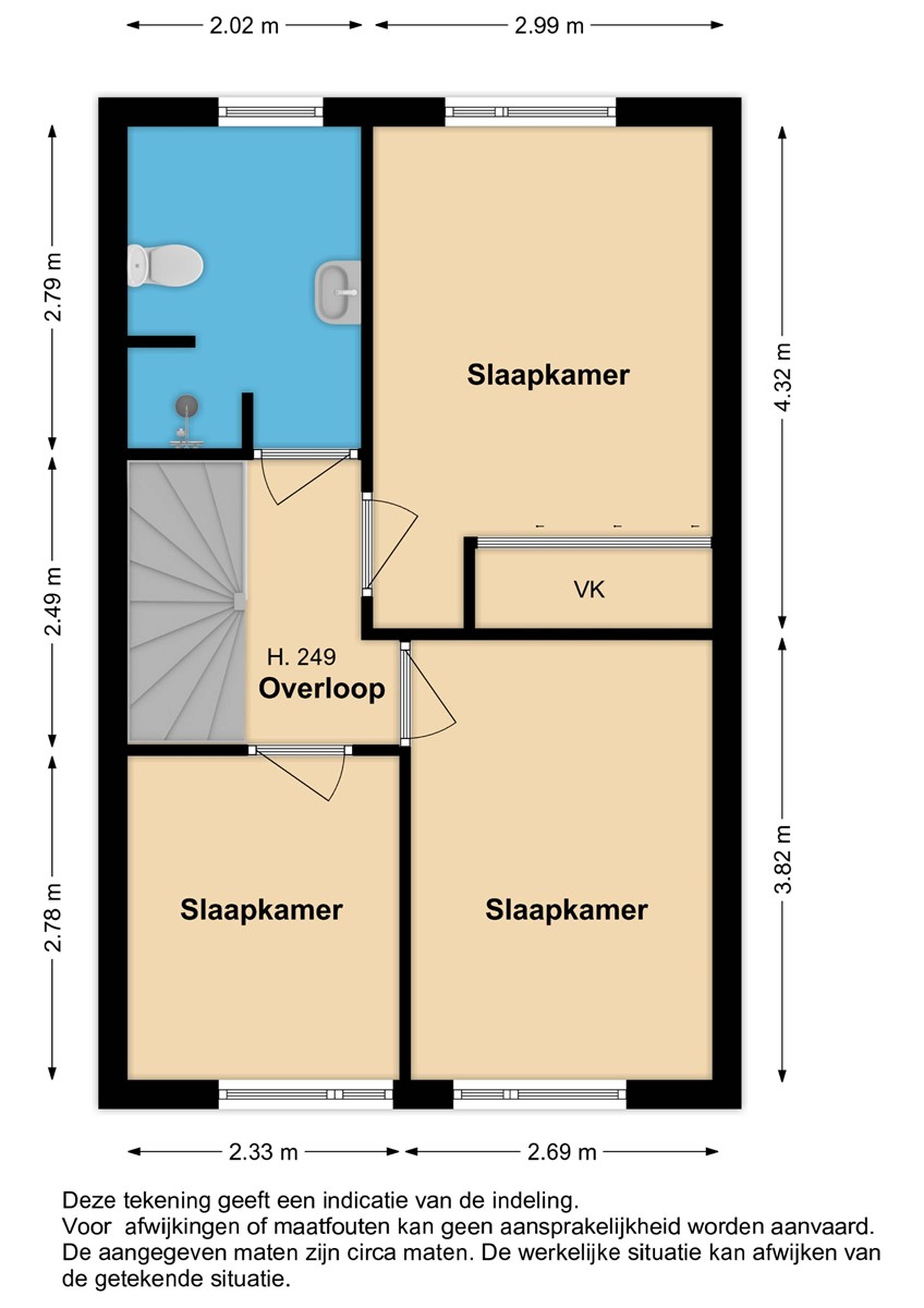 1e verdieping: via de hal komt u op de overloop van de 1e etage met toegang naar de 2e verdieping. Op deze 1e verdieping zijn 3 ruime slaapkamers gemaakt. Door de recht opgetrokken wanden heeft u veel ruimte tot uw beschikking. In alle 3 de slaapkamers kunt u een 2-persoonsbed plaatsen. De slaapkamers zijn keurig afgewerkt en voorzien van vloerbedekking. De slaapkamer aan de achterzijde is tevens voorzien van een elektrisch bedienbaar rolluik.