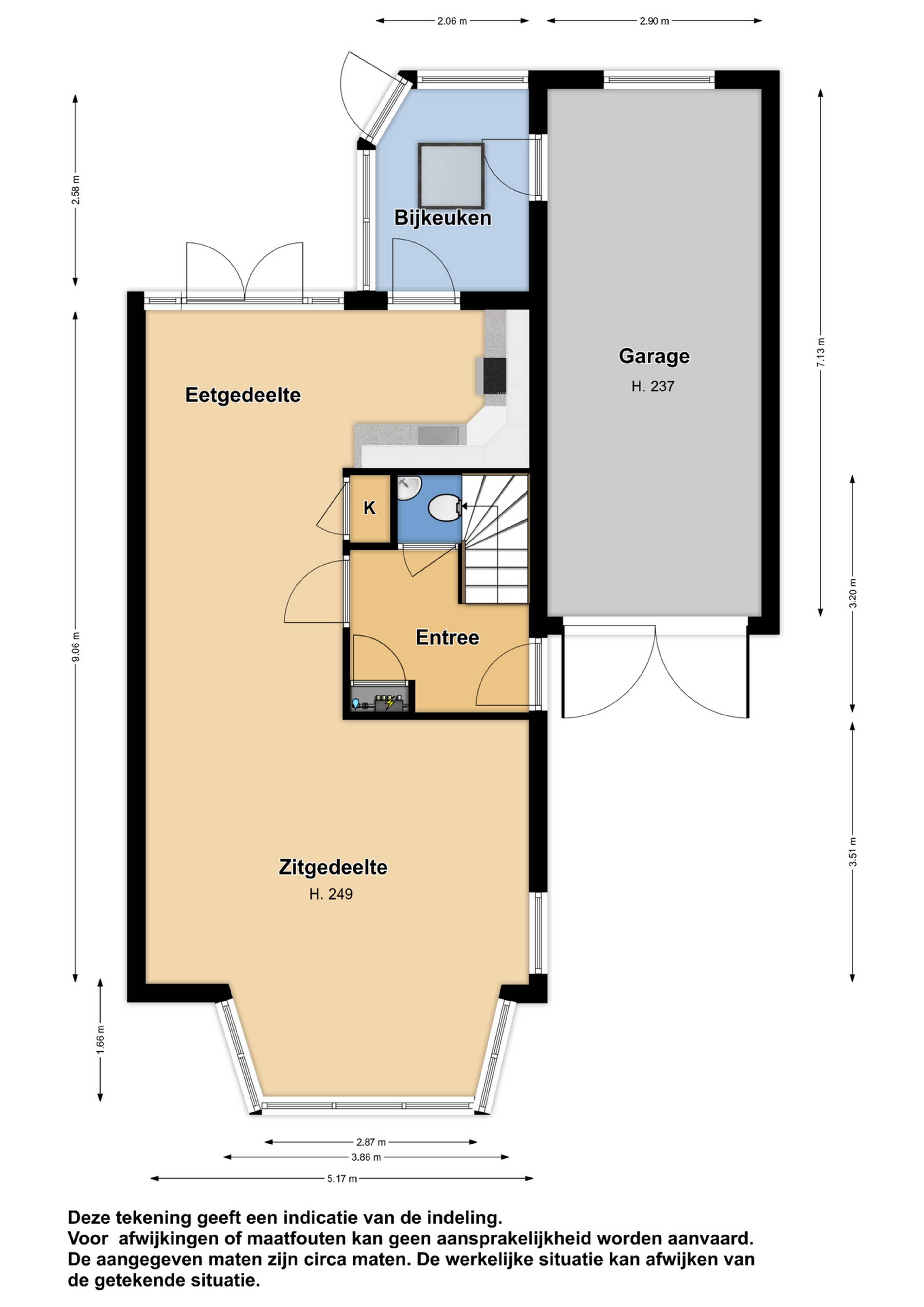 Begane grond: via de zijentree komt u in de ruime hal met garderoberuimte, meterkast en moderne toiletruimte met hangcloset en fonteintje. Via de centrale hal kunt u toegang verkrijgen tot het woonvertrek en de bovenliggende etages.