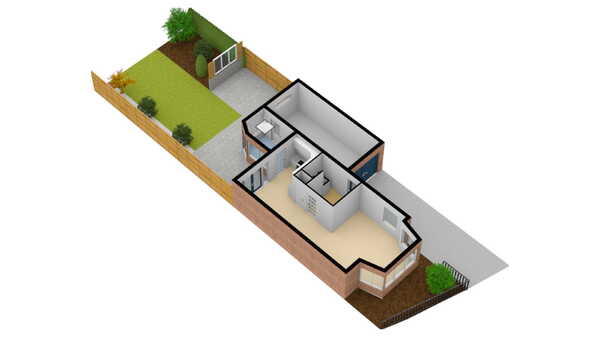 Via de keuken kunt u de praktische bijkeuken bereiken. U kunt hier desgewenst extra keuken apparatuur kwijt. Via de bijkeuken kunt u de tuin aan de achterzijde alsmede de garage, binnendoor, bereiken.
