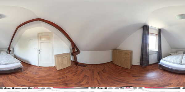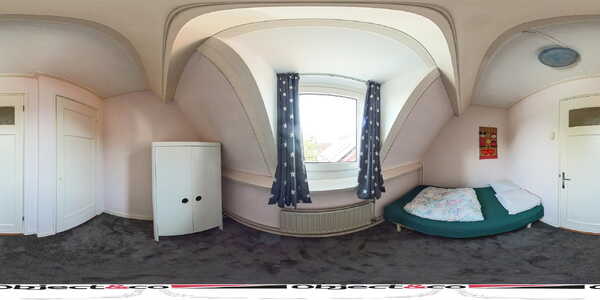 Als we de trap opgaan komen we boven uit in de gang met inpandige bergkast en twee nagenoeg gespiegelde ruime slaapkamers, waarbij nog originele details te zien zijn van de eikenhouten dakconstructie, verder zijn de kamers strak afgewerkt en voorzien van kunststof kozijnen met HR++ isolatieglas.
