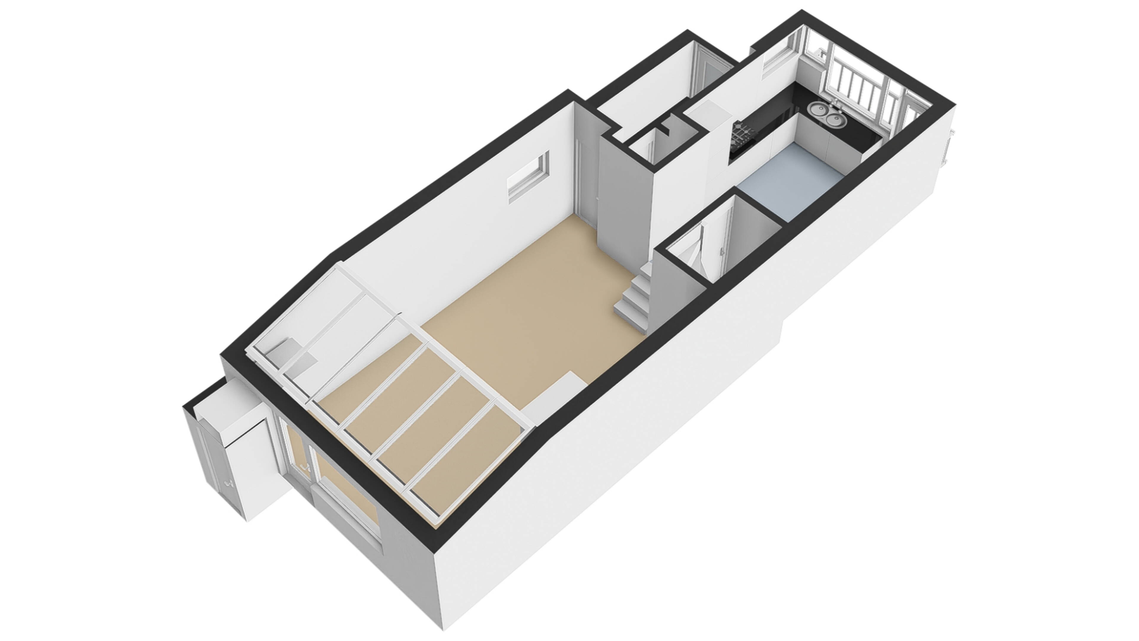 De ruime woonkamer heeft een fijne kijk naar de achtergelegen tuin. Door de praktische indeling kunt u op diverse wijzen uw interieur inrichten. De woonkamer is voorzien van een serre-achtige glaspartij, waardoor u veel lichtinval in de woning heeft. Voor de koude wintermaanden heeft u een haard, dat naar een gashaard is aangepast, tot uw beschikking. Fijn om voor het vlammenspel met een glas wijn even de dag door te nemen. Via een openslaande tuindeur kunt u de achtergelegen tuin bereiken. De woonkamer is met een splitlevel trapje van de woon/leefkeuken gescheiden.
