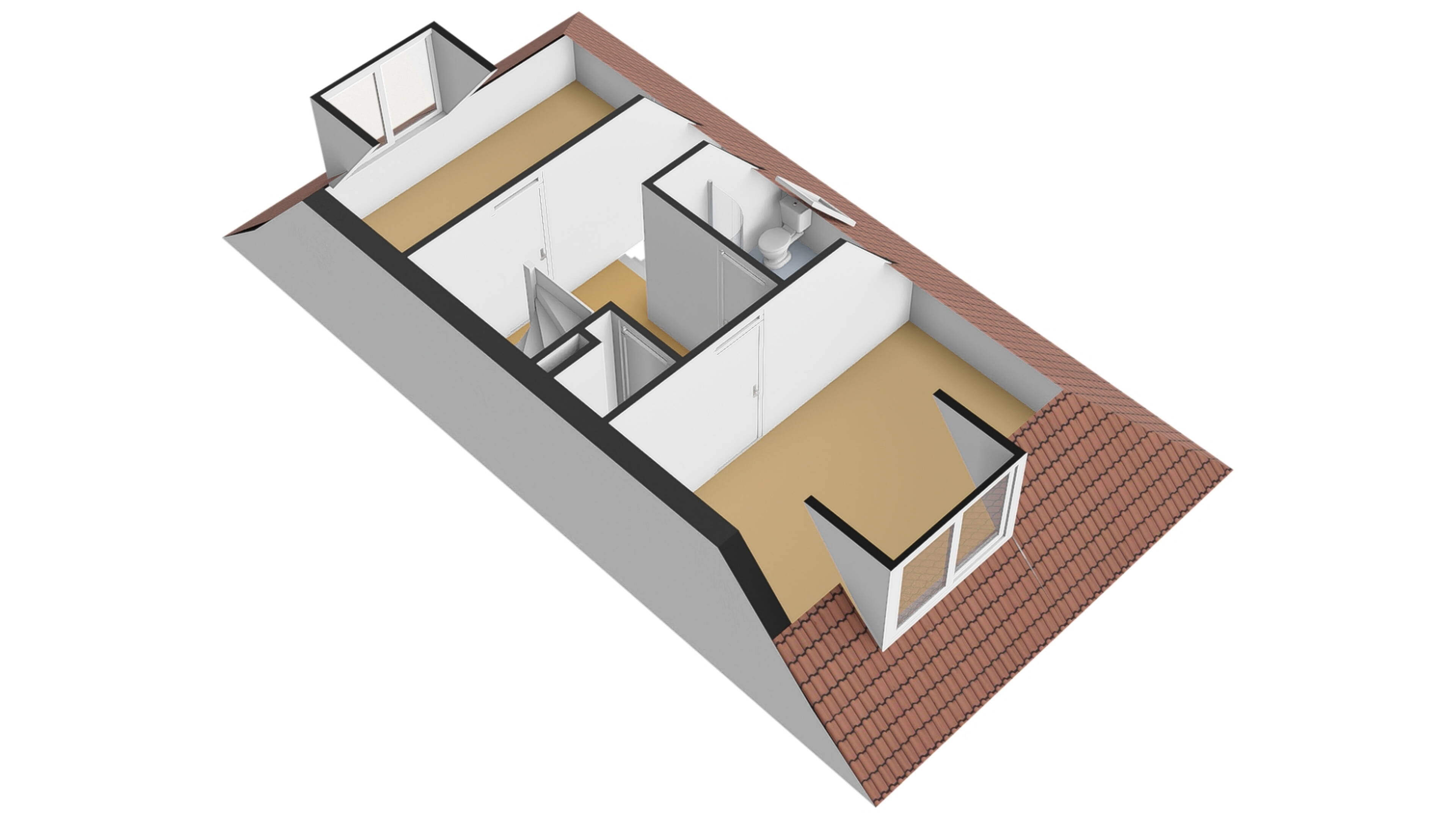 1e verdieping: op de 1e verdieping treft u 2 ruime slaapkamers aan. De slaapkamers zijn speels vormgegeven en eveneens keurig afgewerkt. U kunt in beide slaapkamers prima een 2-persoonsbed plaatsen. Beide slaapkamers zijn uitgevoerd met een dakkapel. Op de 2e verdieping heeft u de mogelijkheid om een extra kinderslaapkamer te maken. Op de overloop heeft u een vaste kast tot uw beschikking, waar u prima uw wasmachine een plaatsje kunt geven.