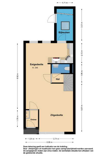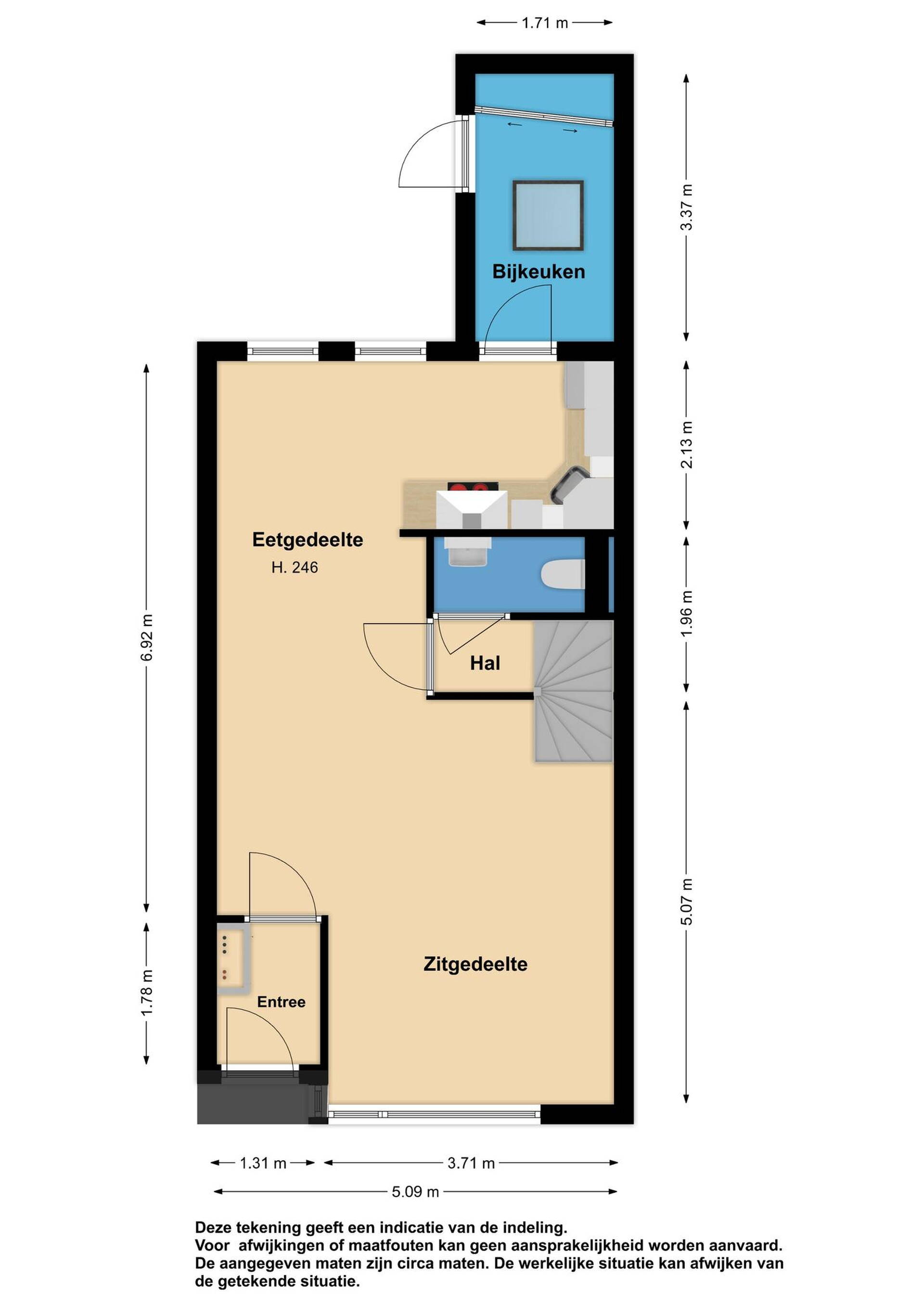 Begane grond: via de entree aan de voorzijde van de woning komt u in de hal, waar zich de meterkast en de garderoberuimte bevinden.