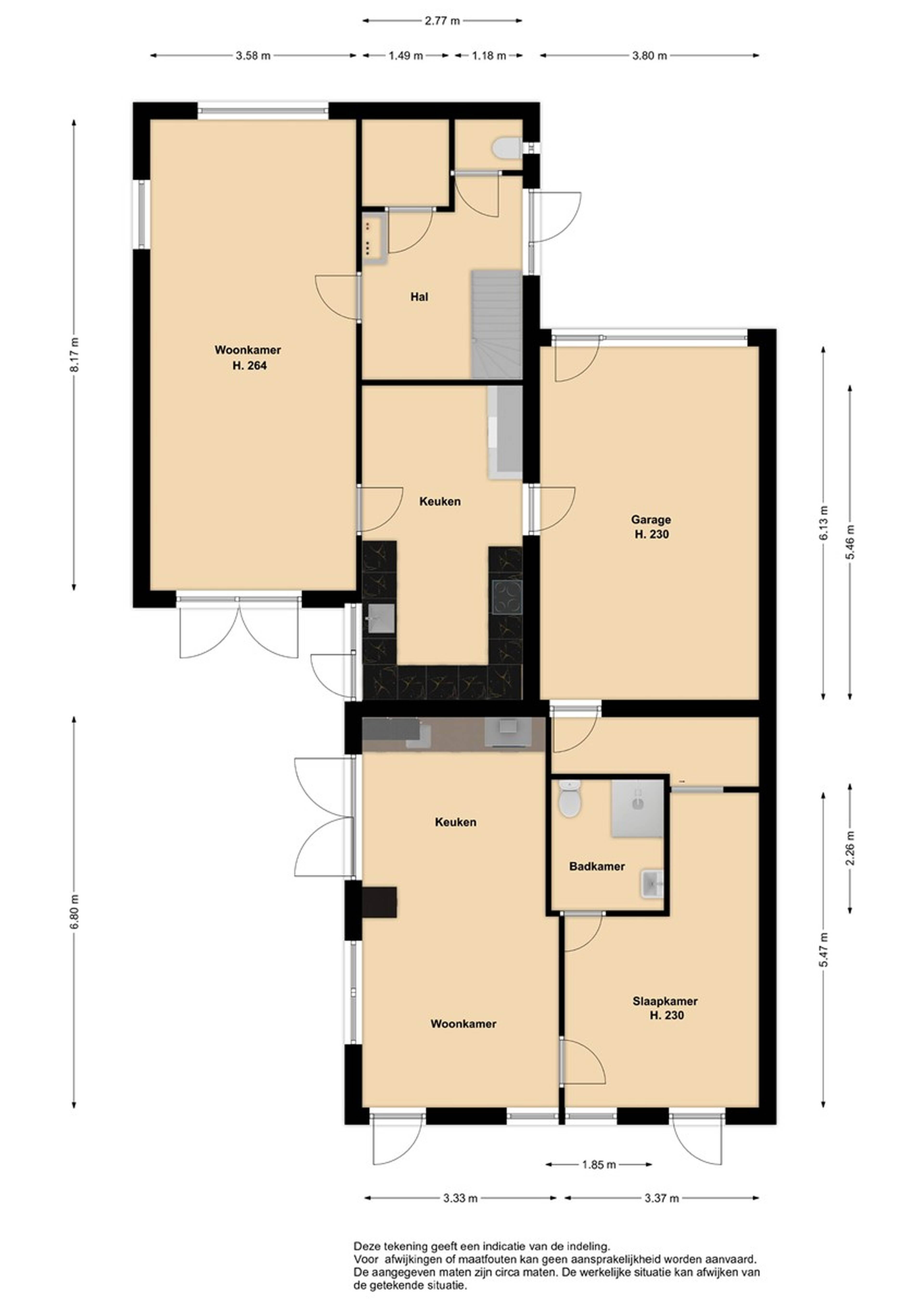 Garage: via de keuken kunt u op inpandige wijze de garage bereiken. De garage is voorzien van een kanteldeur én separate loopdeur aan de voorzijde. In de garage is een uitstortgootsteen met warm en koud water aanwezig.