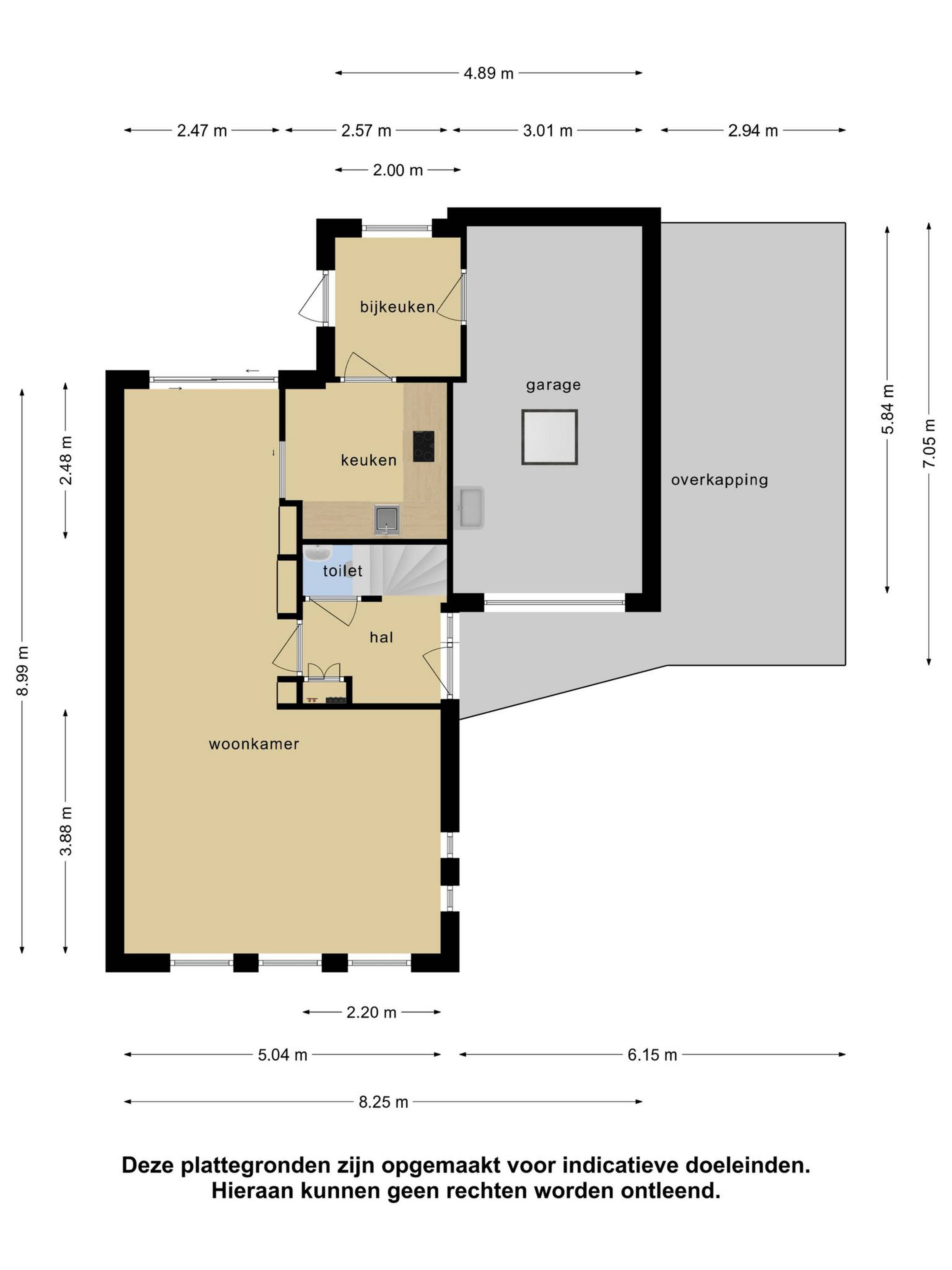 Via de entree aan de zijkant van de woning komt u in de hal met garderobe, meterkast, toiletruimte en trapopgang.