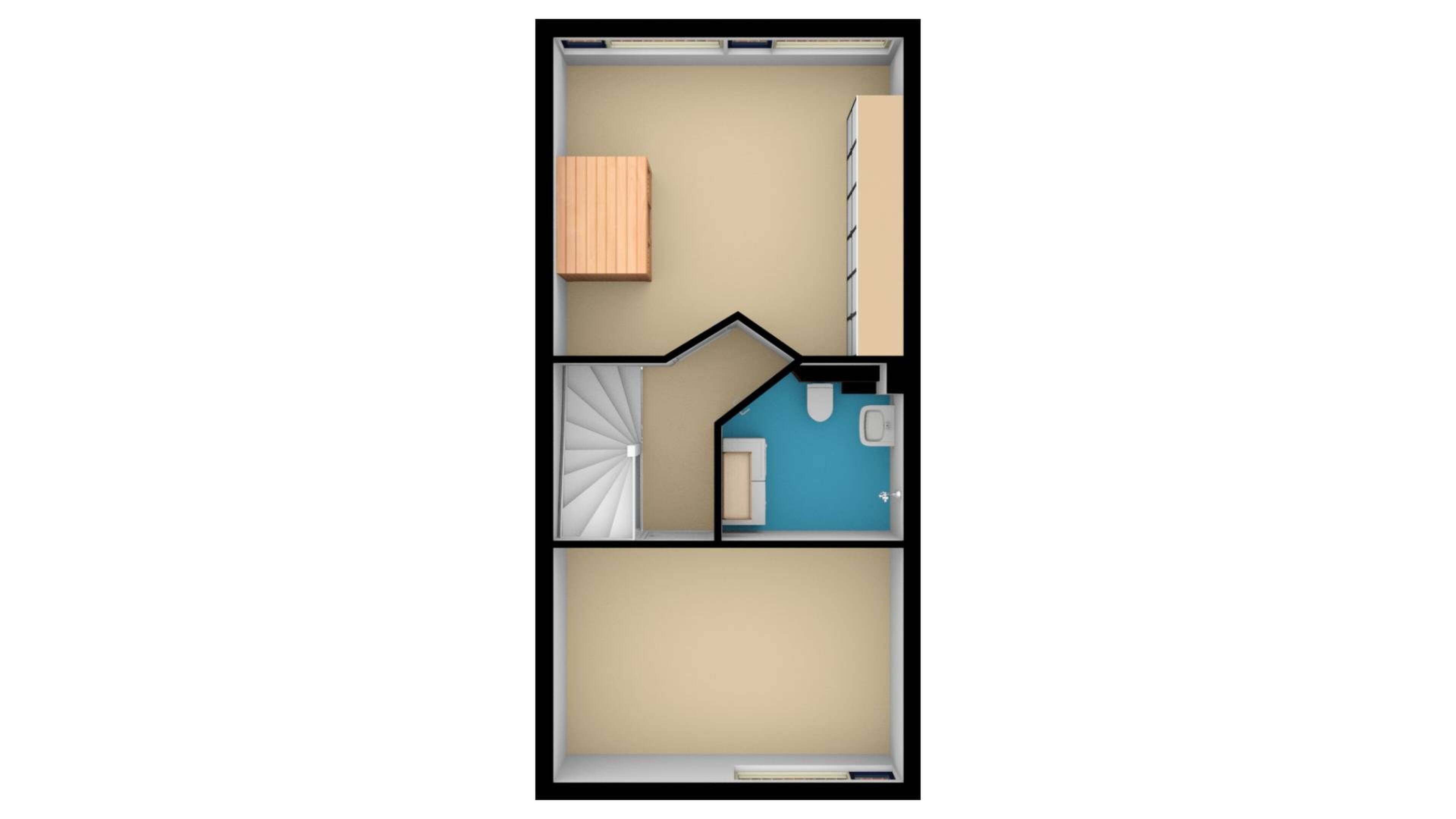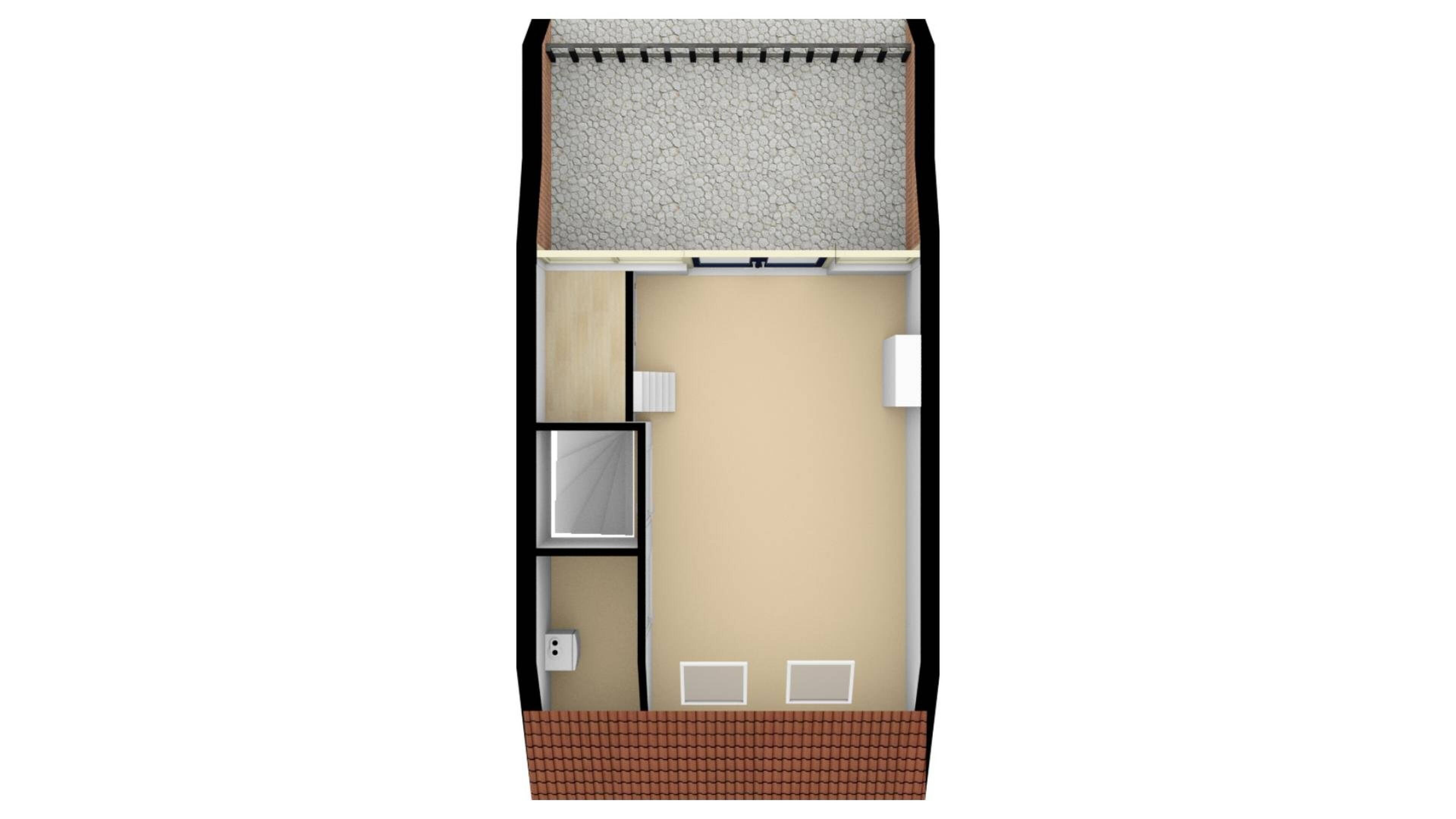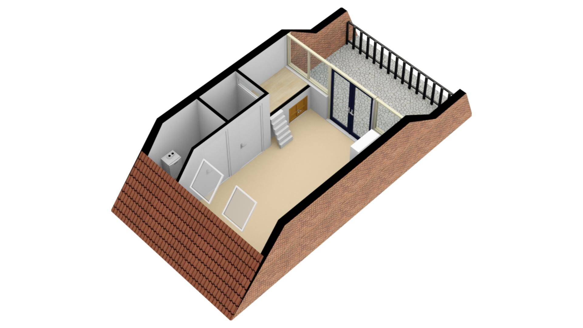 2e verdieping: de 2e verdieping is met een vaste trap te bereiken. U treft hier een 3e ruime slaapkamer aan, met de toegang naar een dakterras. Het terras is eveneens gelegen op het westen. Het is een heerlijke tienerkamer en u kunt ook hier prima een 2-persoonsbed plaatsen. Achter de knieschotten heeft u voldoende ruimte voor het bergen van overtollige spulletjes. Op deze etage is tevens, in een separate bergkast, de HR CV combiketel geplaatst. U heeft de mogelijkheid om ook hier uw wasmachine een plaatsje te geven.