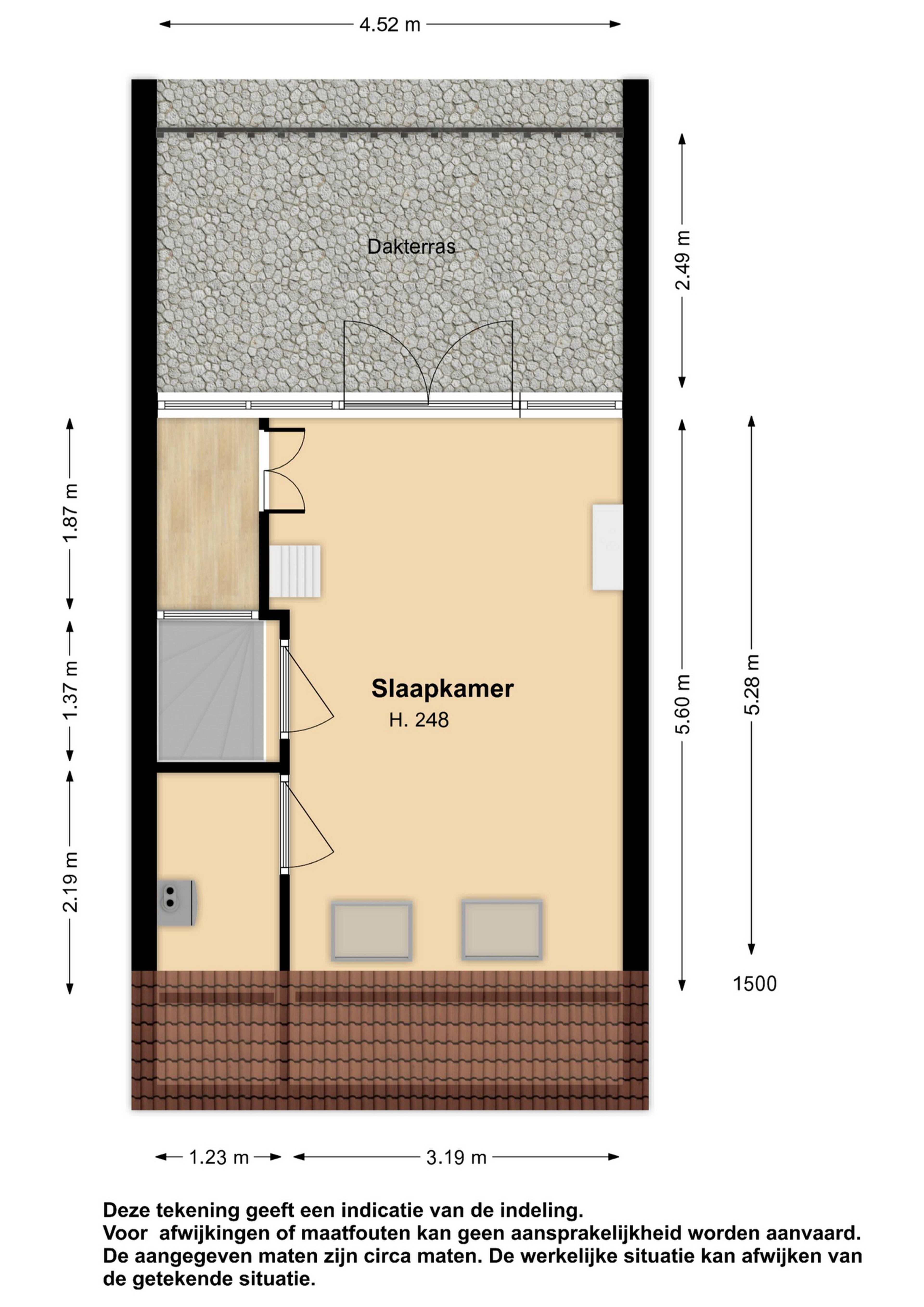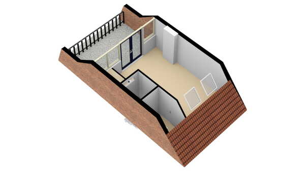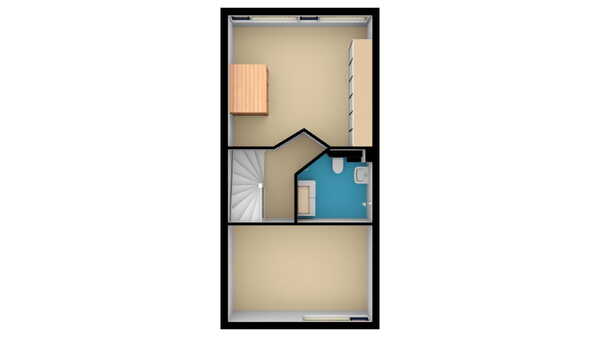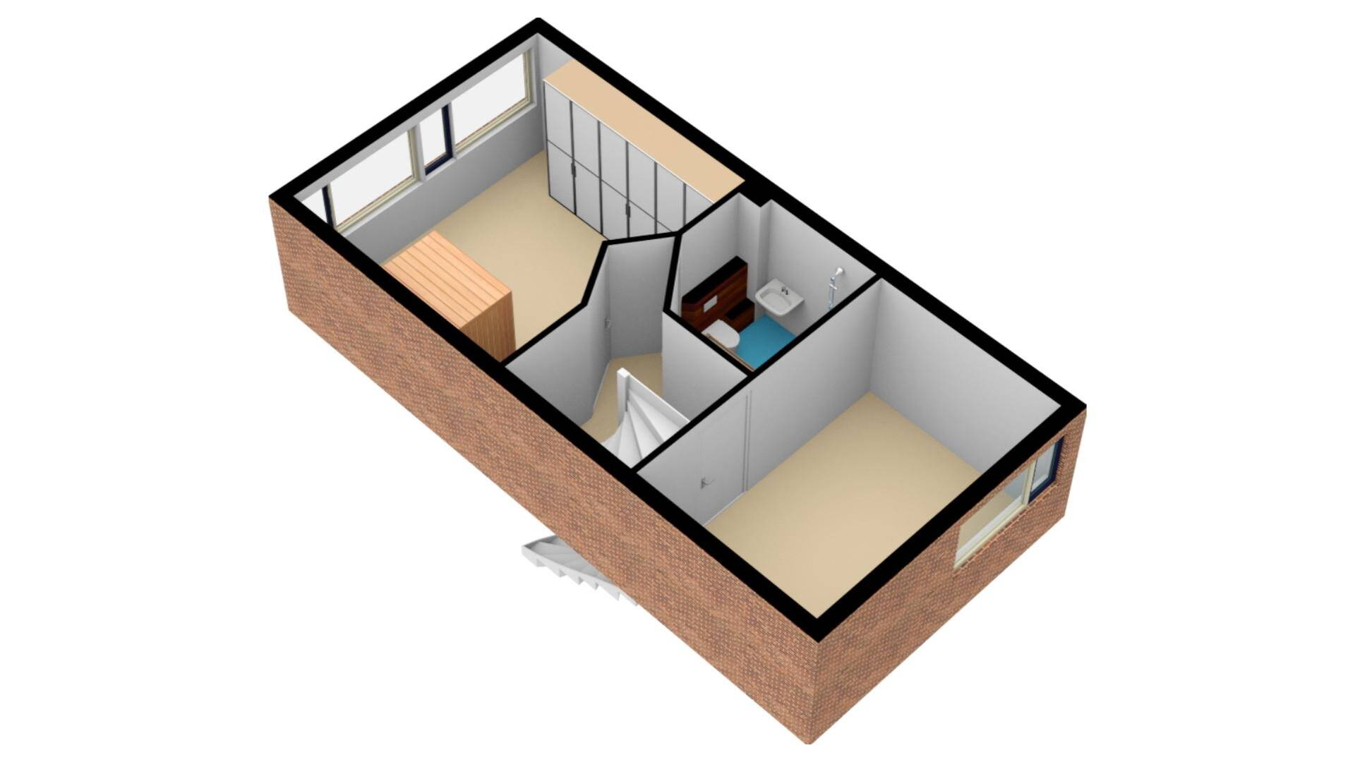 2e verdieping: de 2e verdieping is met een vaste trap te bereiken. U treft hier een 3e ruime slaapkamer aan, met de toegang naar een dakterras. Het terras is eveneens gelegen op het westen. Het is een heerlijke tienerkamer en u kunt ook hier prima een 2-persoonsbed plaatsen. Achter de knieschotten heeft u voldoende ruimte voor het bergen van overtollige spulletjes. Op deze etage is tevens, in een separate bergkast, de HR CV combiketel geplaatst. U heeft de mogelijkheid om ook hier uw wasmachine een plaatsje te geven.