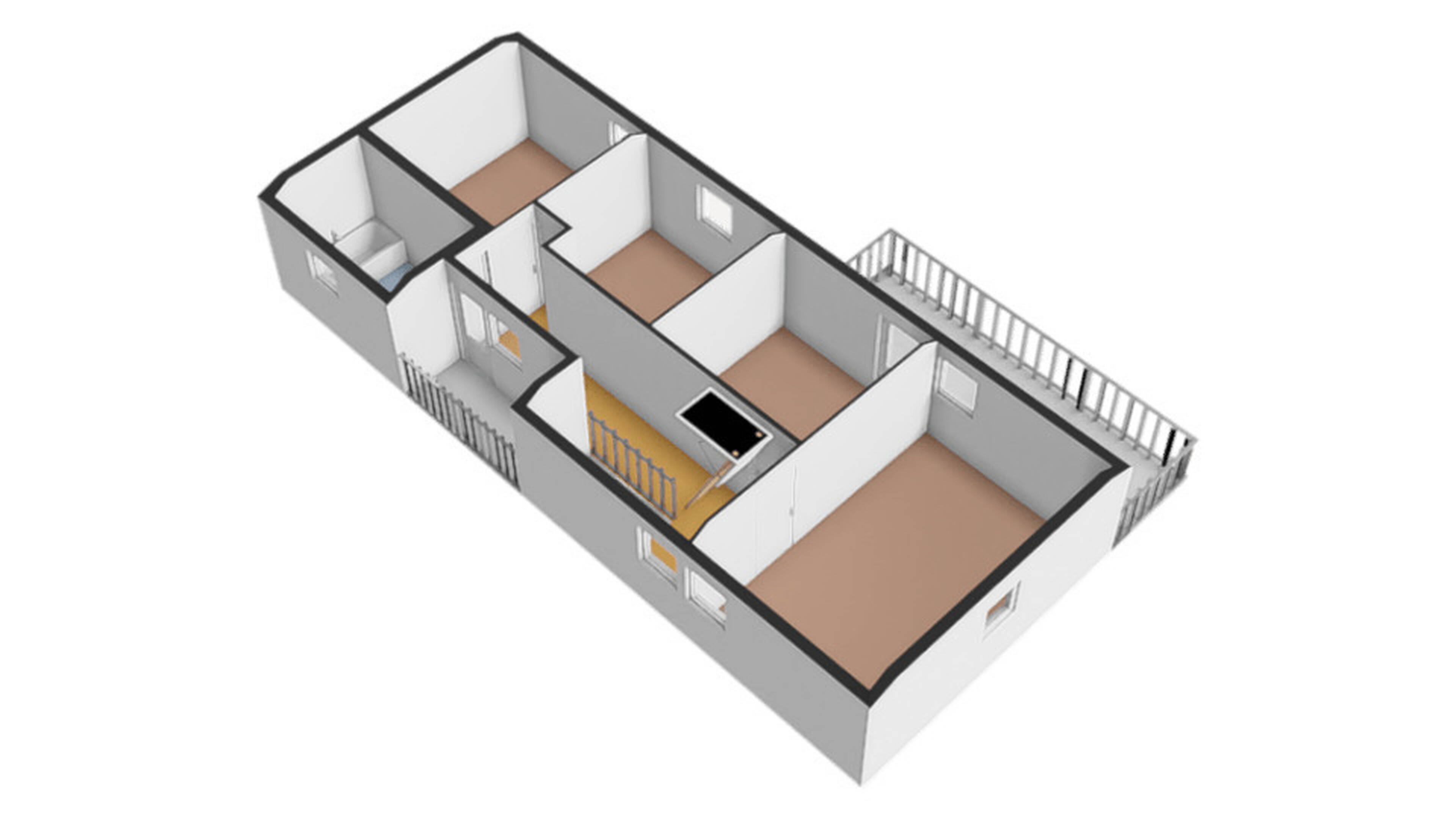 Als we boven lopen via de trap met eigen gemaakte trapleuning en balustrade in de vorm van een ketting, komen we uit op de gang waar we maar liefst 4 slaapkamers van verschillende afmetingen tegen komen, waarbij u in alle kamers met gemak een 2 persoons bed kwijt zou kunnen. een van die slaapkamers bied ook toegang tot het dakterras en vanuit de gang komen we bij de badkamer die voorzien is van een ligbad met daarboven een douche, een wastafel en een tweede toilet. Hier zit ook de toegangsdeur tot het inpandige balkon waar de omvormer hangt voor de 12 zonnepanelen en vind u het luik terug voor de vliering waar u nog wat spullen kunt opbergen.