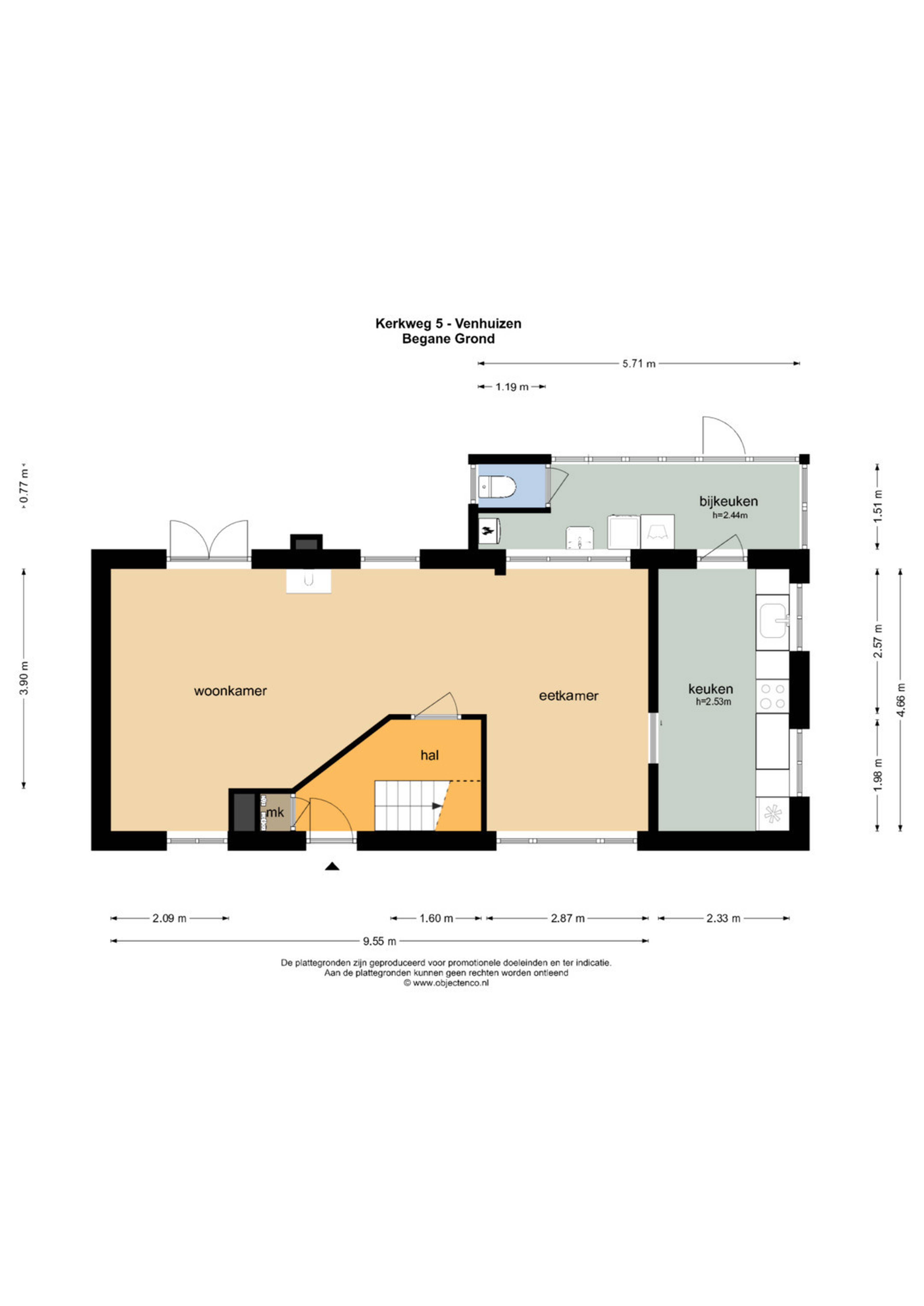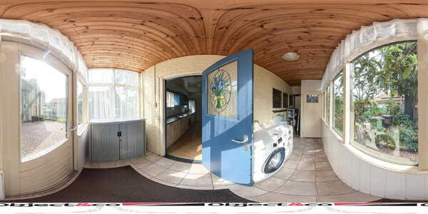 Zoals gebruikelijk in West Friesland komt eigenlijk iedereen altijd achterom en dat is bij deze woning dus niet anders. U betreed de woning via de aangebouwde bijkeuken waar de wasmachine, droger en CV Combiketel geplaatst zijn. Tevens vind u hier het toilet.