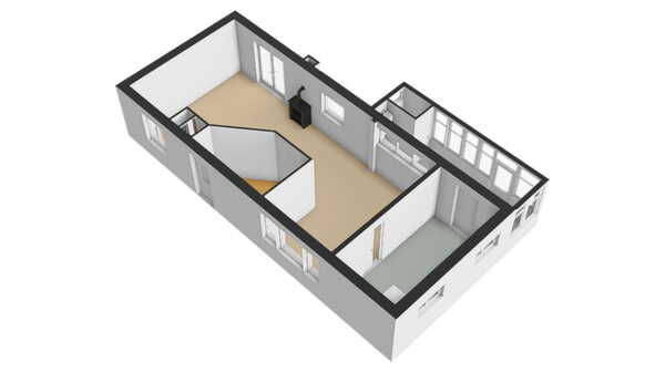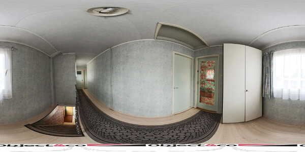 In de woonkamer vindt u ook de toegang tot de hal met de voordeur, meterkast en trapopgang naar de bovenverdieping.