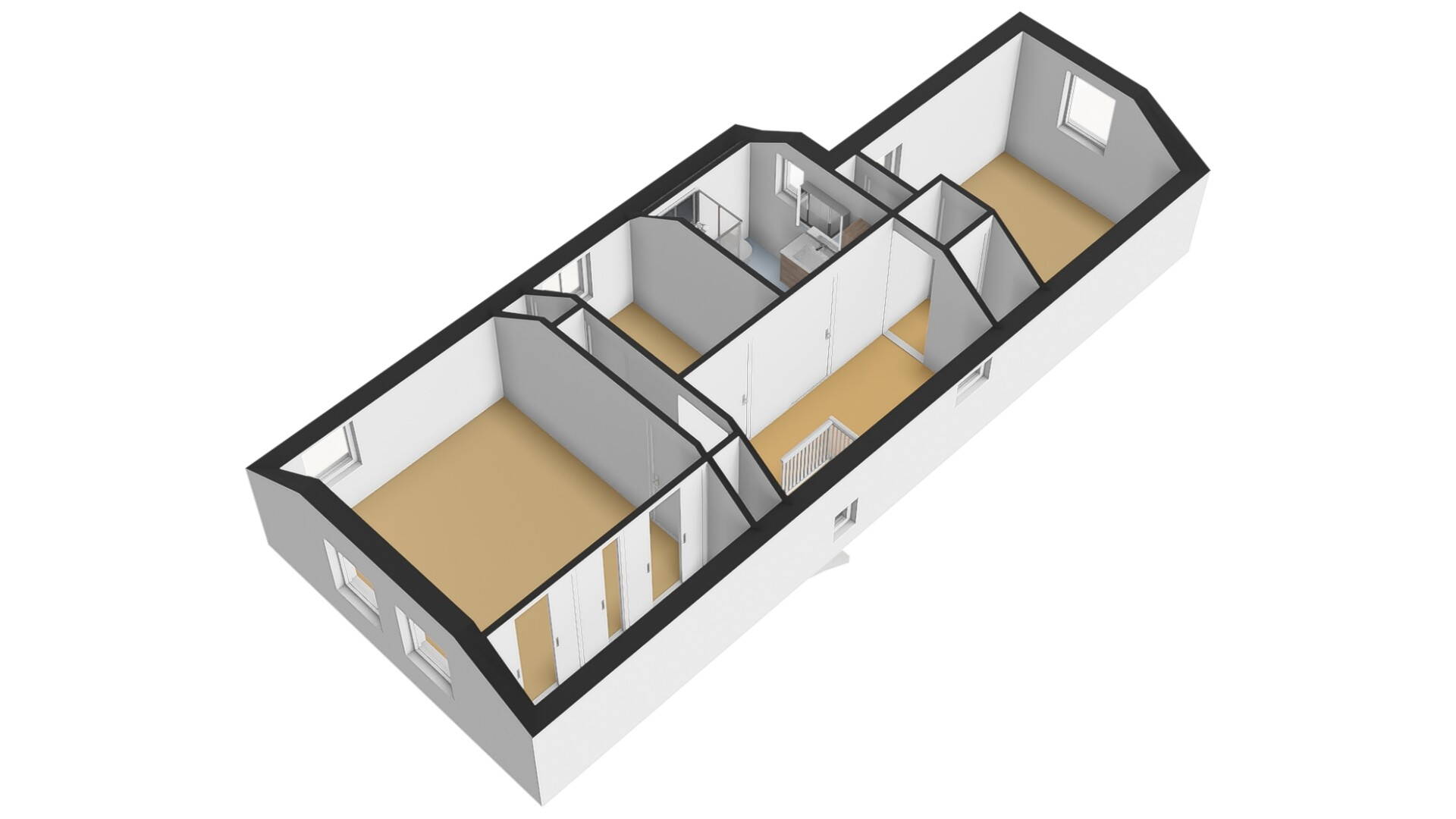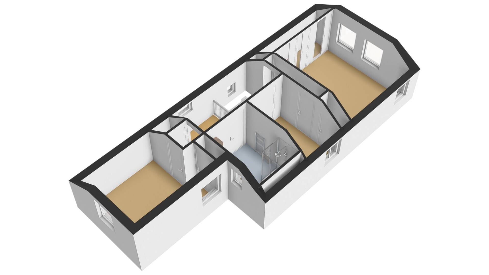2e verdieping: de 2e verdieping betreft een bevloerde bergvliering. Via de kleinere slaapkamer kunt u de bergzolder bereiken en hier extra spulletjes kwijt.