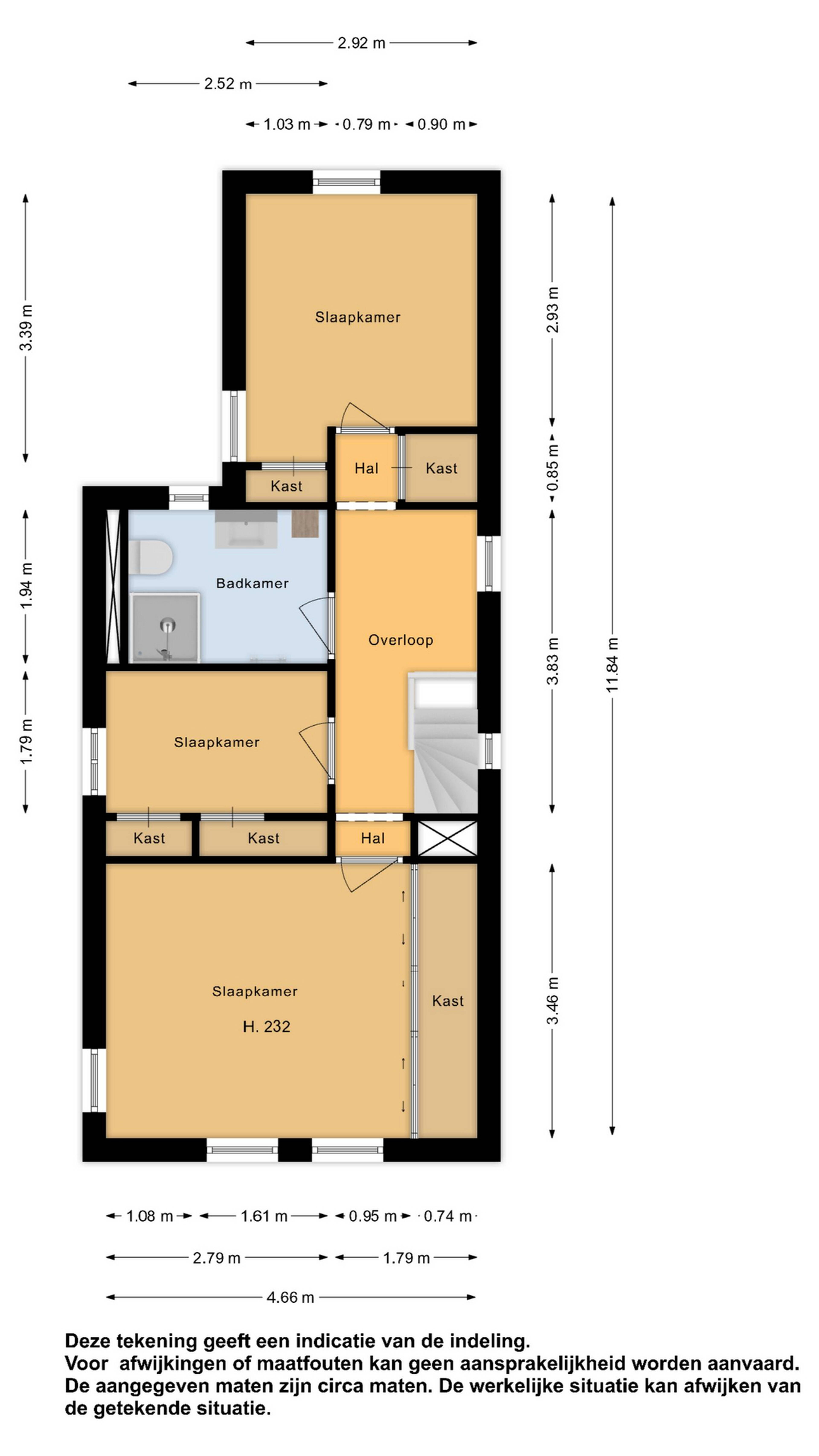 1e verdieping: via de vaste trap bereikt u de 1e verdieping met ruime overloop, welke toegang biedt tot de functionele badkamer en 3 slaapkamers van verschillende afmetingen. De voorste slaapkamer is zelfs zeer royaal. Alle slaapkamers zijn voorzien van vaste kasten. Indien u bijvoorbeeld 4 slaapkamers nodig heeft kunt u de indeling van de 1e verdieping hiervoor prima aanpassen.