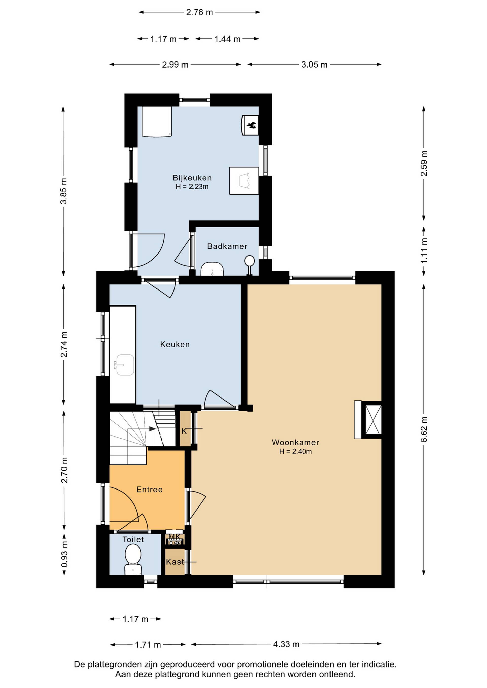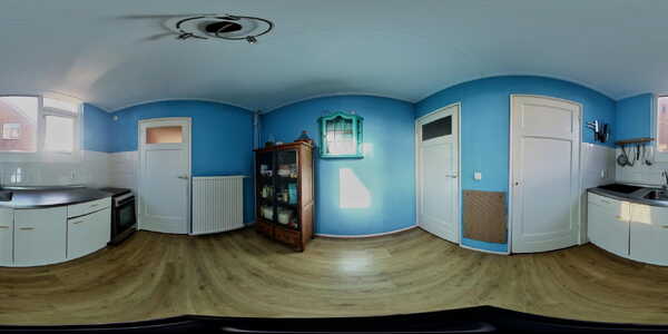 Vervolgens kom je binnen in de hal waar je de toiletruimte, de meterkast en de trapopgang naar de 1e verdieping aantreft, maar daarover later meer. Laten we eerst eens genieten van die geweldige raampartij aan de voor en achterzijde van de woning, dit is een doorzon woonkamer uit het boekje, wat een berg licht geeft dat in de woning zeg. De woonkamer is ook voorzien van een open haard, waar u in de winter lekker op een kleedje voor kunt gaan zitten met een goed glas wijn, kijkend naar uw favoriete film of serie. De open haard is namelijk in het midden tussen de woon en eetkamer geplaats waardoor je altijd goed zicht hebt op een lekker knisperend vuurtje. Als we bij de keuken komen, valt gelijk de frisse blauwe kleur op de muren op, daar sta je straks vanzelf vrolijk te kokkerellen. In deze keuken voorzien van gasfornuis en keukenblok met diverse kastjes heeft u aan opberg mogelijkheden totaal geen gebrek, dat komt mede omdat hier ook de toegangsdeur naar de kelder te vinden is, die meer dan redelijk van formaat is. Lopen we door de keuken richting de bijkeuken, komen we nog langs de badkamer met een douche en aparte wastafel die we gerust "functioneel" kunnen noemen en wel wat liefde en aandacht zou kunnen gebruiken. In de bijkeuken treffen we tevens de in 2018 geplaatste CV-combiketel installatie aan van het gerenommeerde merk Intergas, het model is de Kombi Kompakt HRE 36/30 en deze staat garant voor een grote hoeveelheid warm water door het hele huis en kan alle vertrekken met gemak warm houden. De wasmachine en droger kunnen we hier ook terug vinden, samen met de koel/vries combi die daar nu handig geplaatst is zodat je in de keuken nog meer de ruimte hebt om je uit te sloven boven de potten en pannen die staan te pruttelen op het gasfornuis.