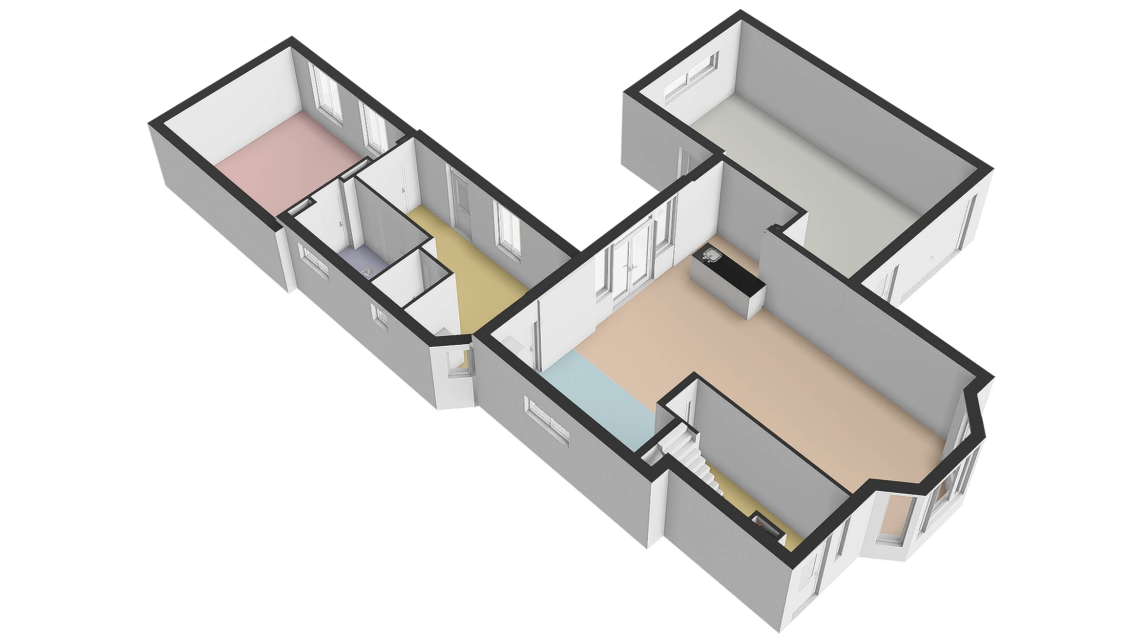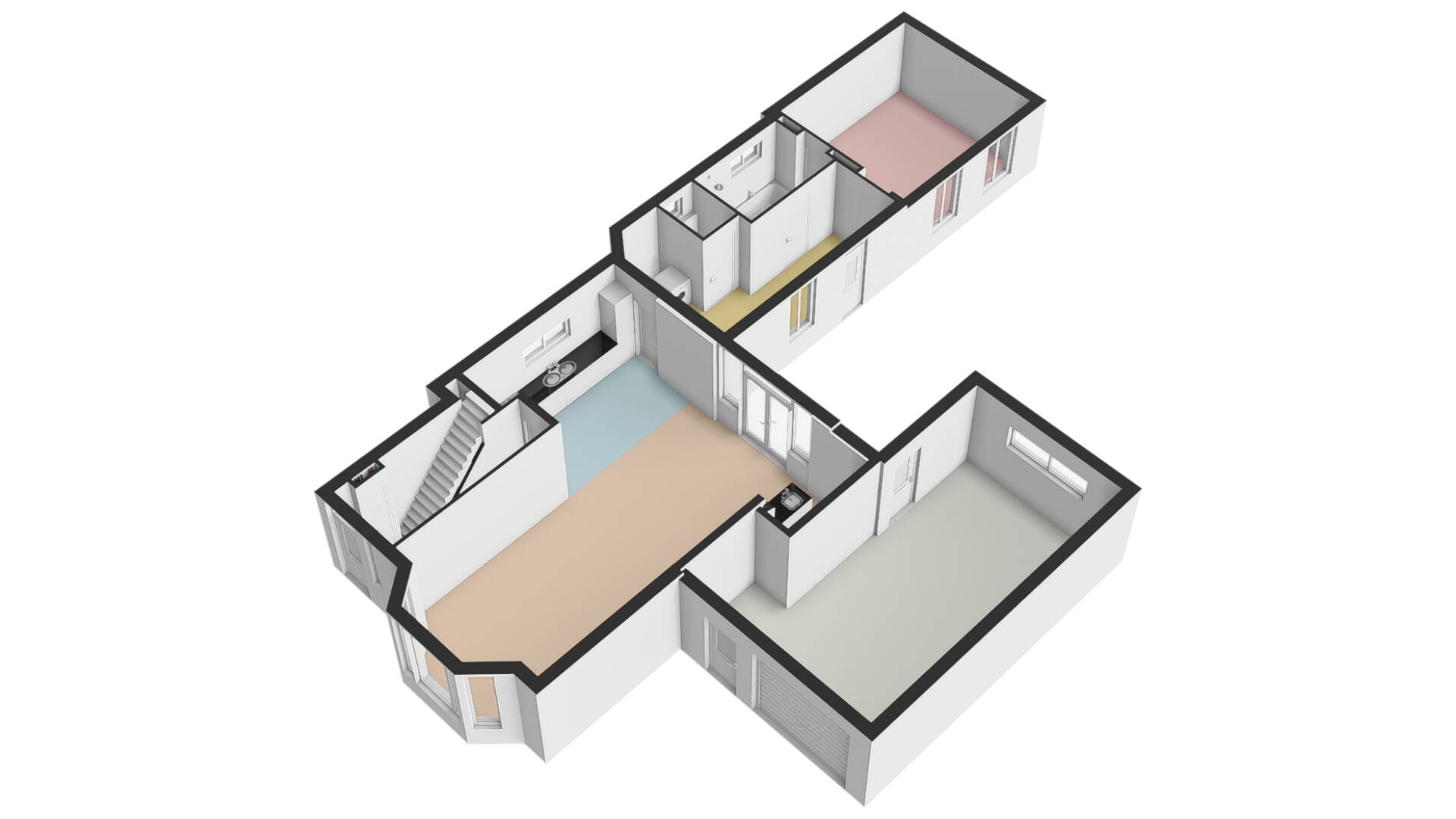 Slaap / werkkamer parterre: op de parterre heeft u de beschikking over een zeer grote slaapkamer. U kunt deze woning dus ook gelijkvloers bewonen! De kamer is voorzien van keurig afgewerkte wanden en plafond. Vanzelfsprekend kunt u deze ruimte ook als werkkamer of kantoor/praktijkruimte gebruiken.