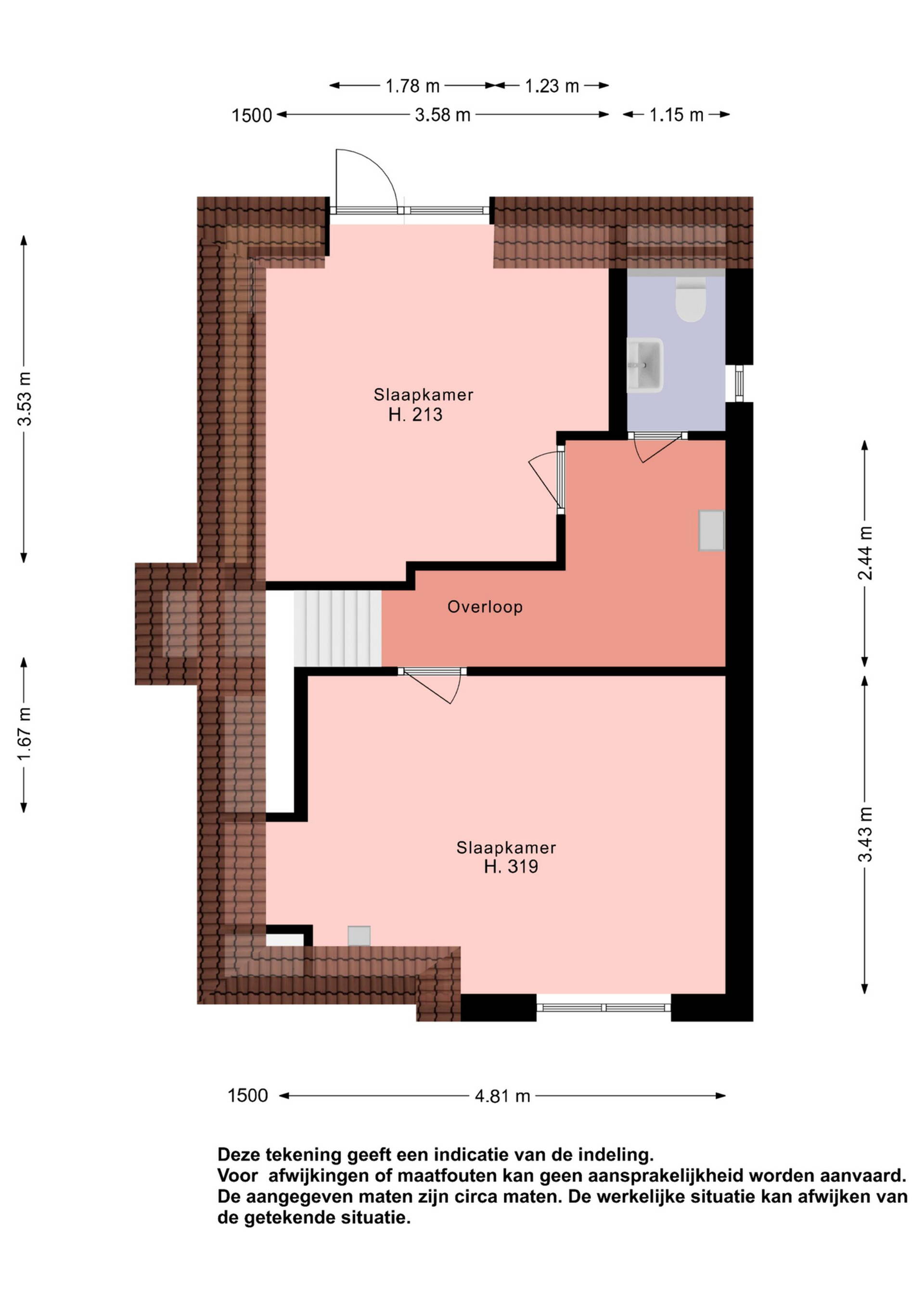 Op deze verdieping heeft u nog een separate toiletruimte met wastafelmeubel tot uw beschikking.