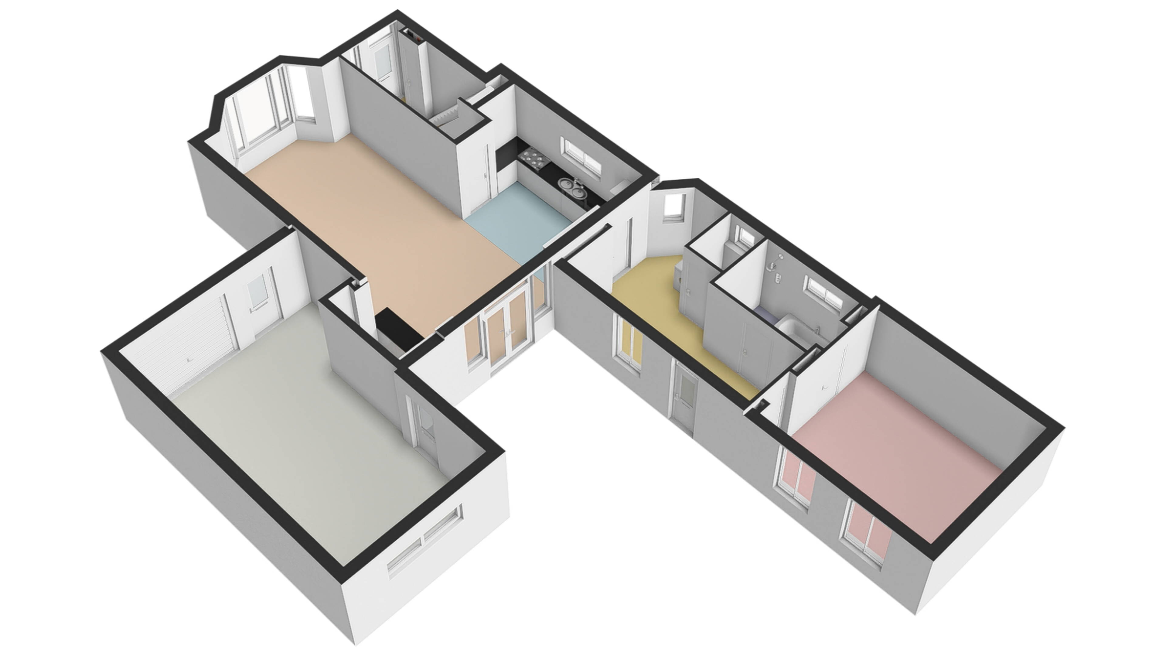 Direct naast de woonkamer is de woon/leefkeuken gelegen. De keurige keuken is ook lekker licht en geeft u goed zicht op uw kookkunsten. De keuken heeft een L- opstelling en is uitgerust met een afzuigkap, 5 pits gaskookplaat en koel/vriescombinatie. U heeft alle ruimte om in de keuken een flinke eettafel te plaatsen