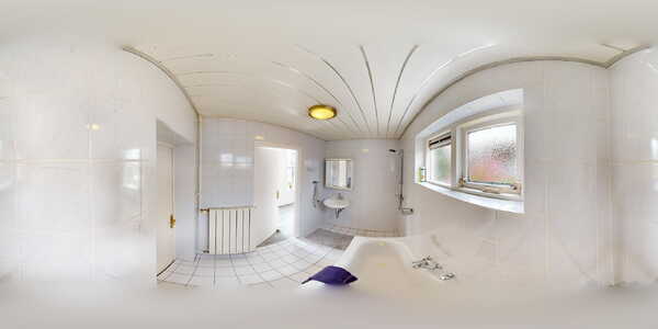 Badkamer parterre: de ruime badkamer is uitgevoerd in een witte kleurstelling en volledig betegeld. De badkamer is voorzien van een wastafelmeubel, douchegelegenheid en ligbad.