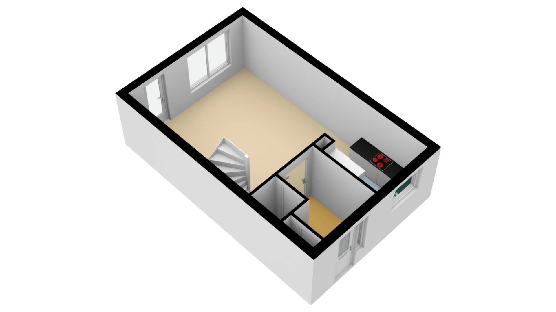 De woonkamer heeft fijne afmetingen en biedt veel praktische ruimte. U kunt hierdoor ook uw interieur op diverse wijzen inrichten. Op de vloer ligt een moderne PVC vloer en de wanden én het plafond zijn strak afgewerkt. Vanuit het zitgedeelte met openslaande tuindeur heeft u een leuke kijk de zonnige tuin in. Het draagt bij tot een ruimtelijke beleving.