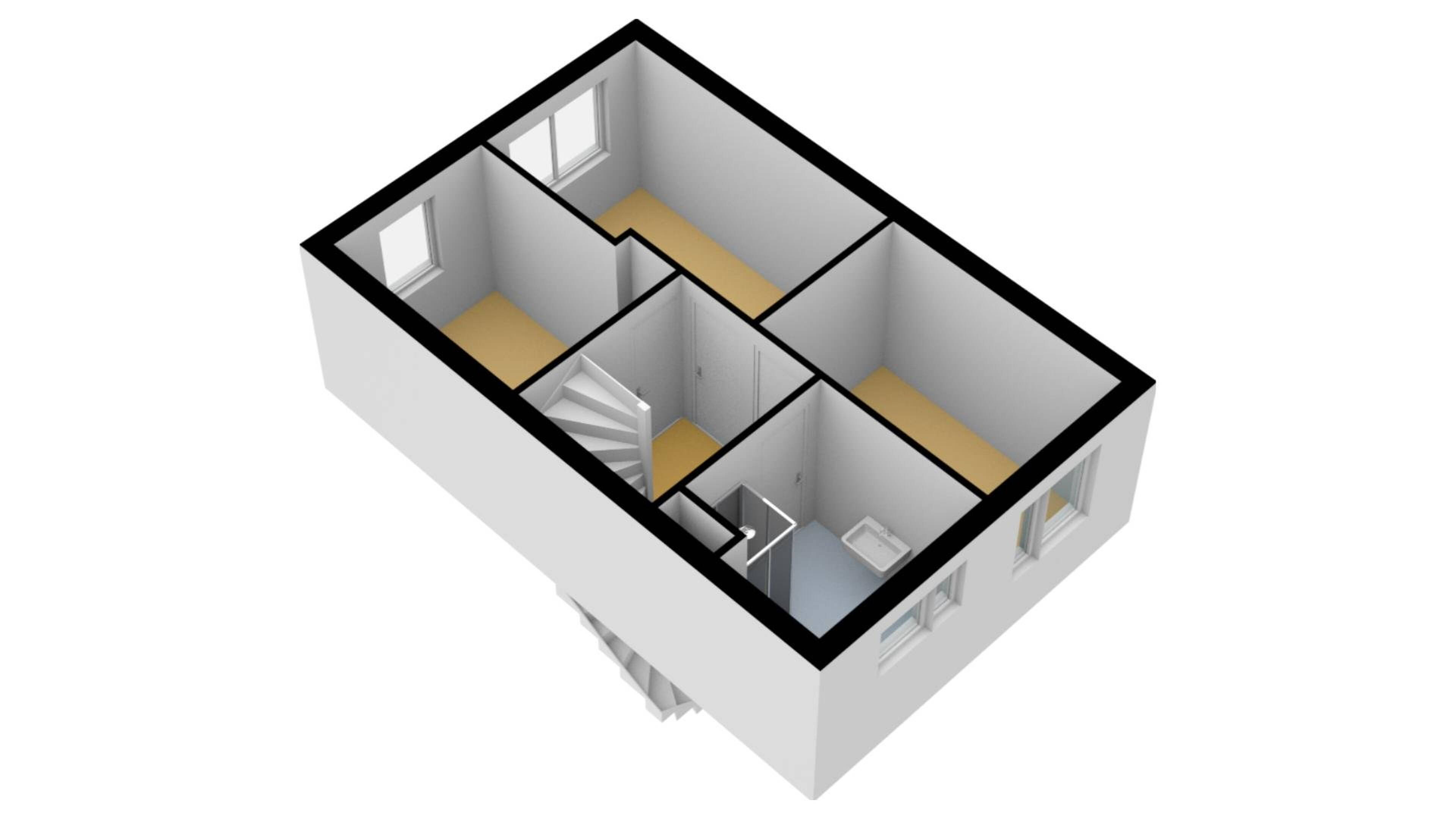 1e verdieping: op de 1e verdieping zijn 3 slaapkamers gesitueerd. De slaapkamers zijn keurig afgewerkt met laminaatvloeren. Het geheel maakt een verzorgde indruk. Alle slaapkamers hebben zo hun speelse details. Ook zijn hier alle wanden en plafonds met strak stucwerk afgewerkt.