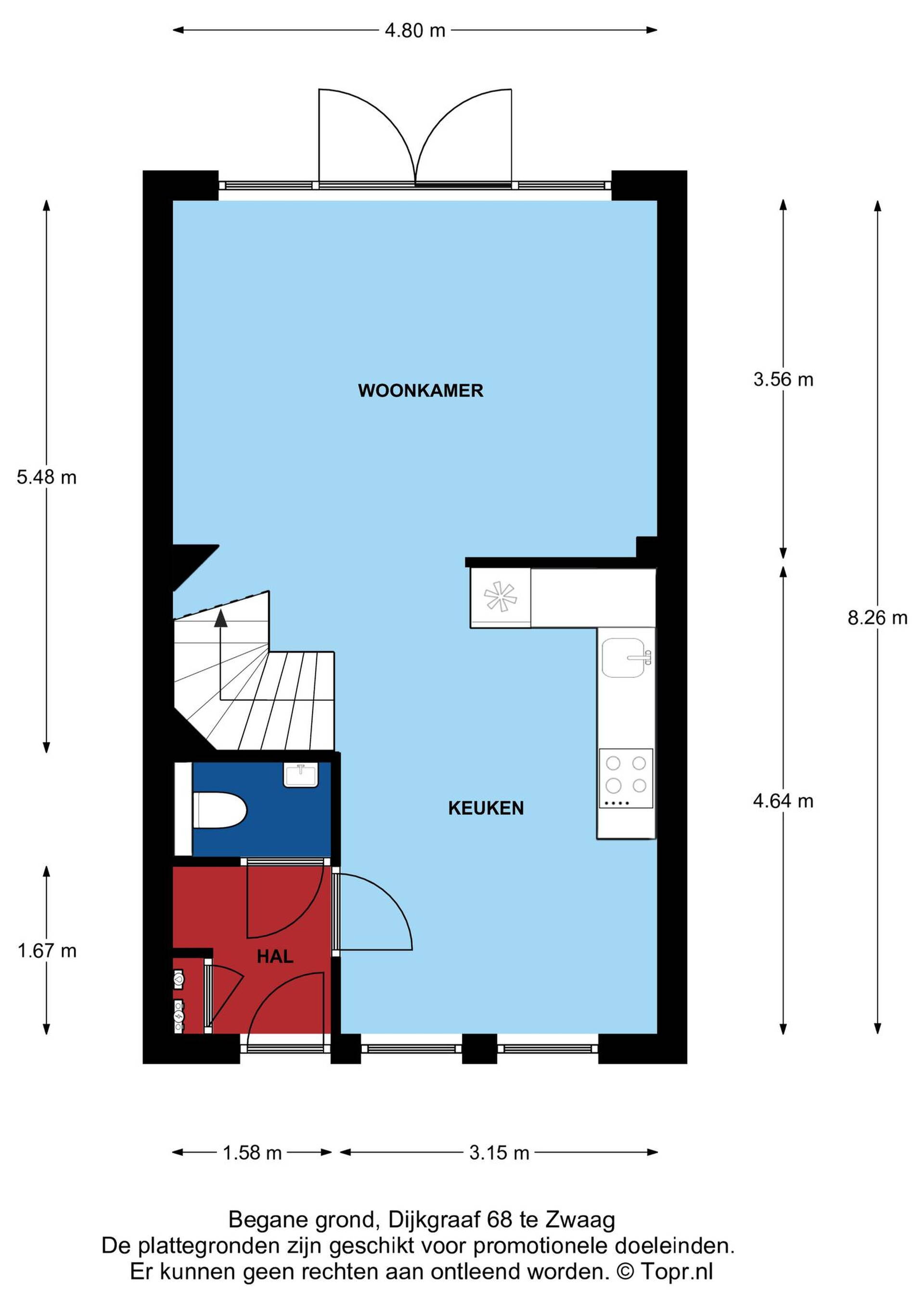 Indeling: via de entree met garderoberuimte en toilet komt u in de woonkamer.