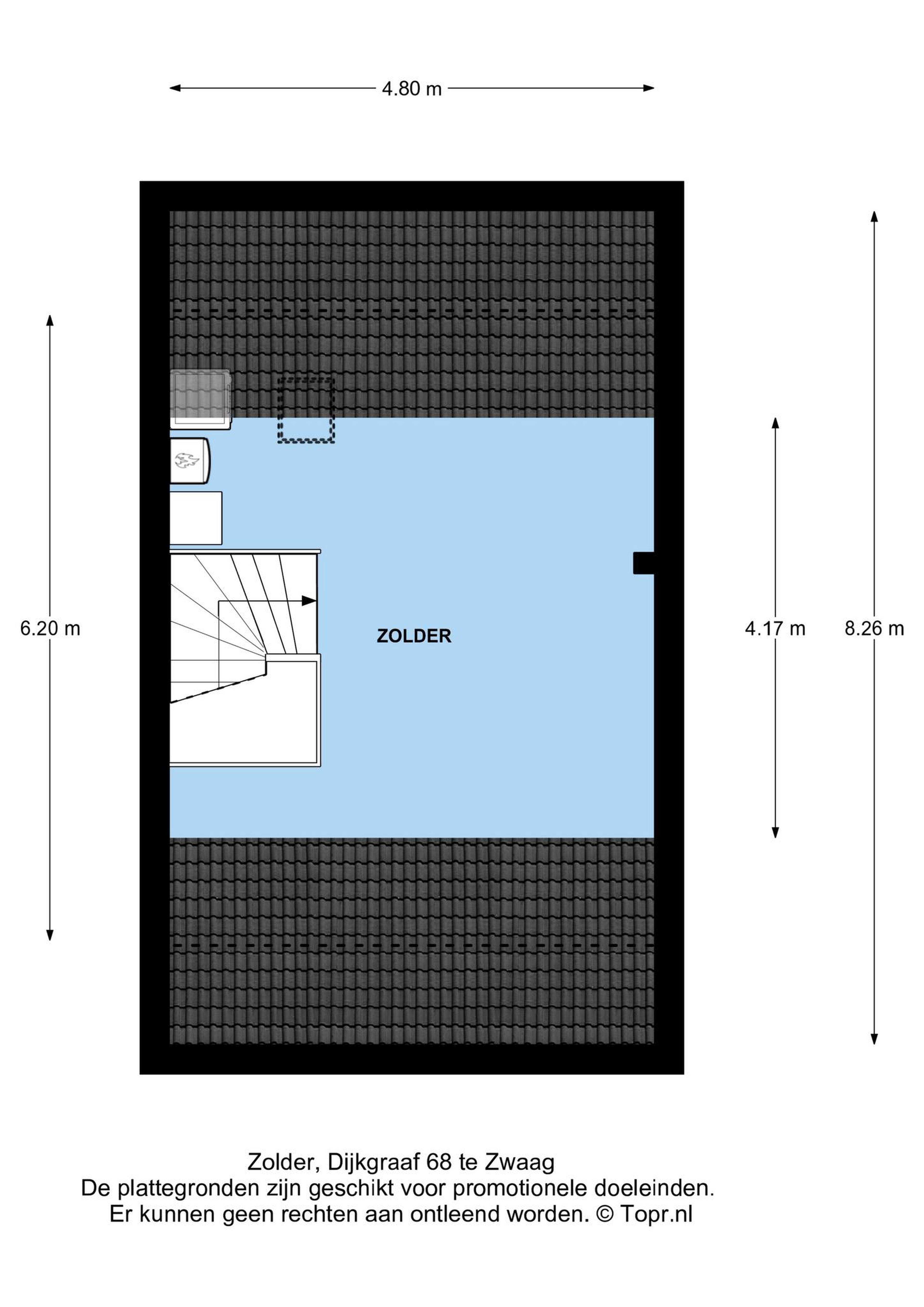 2e verdieping: Met een vaste trap komt u op de zolderverdieping waar zich de aansluitingen van de wasmachine en droger bevinden en de cv-installatie.