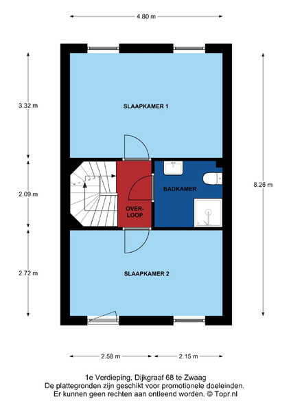 1e verdieping: Op de eerste verdieping bevinden zich 2 zeer ruime slaapkamers aan de voor- en de achterzijde en over de gehele breedte van de woning. De slaapkamer aan de voorzijde heeft een frans balkon. Van de slaapkamer aan de achterzijde kunt u eventueel 2 (slaap)kamers maken.