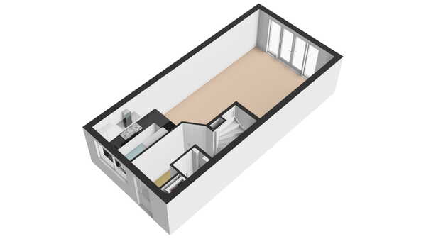 De, tijdens de bouw van de woning, uitgebouwde woonkamer heeft ruime afmetingen en heeft via de openslaande tuindeuren een fraaie kijk naar de achtergelegen tuin. De wanden zijn voorzien van stak stucwerk en op de vloer is een moderne PVC vloer gelegd. Doordat de woning is voorzien van hete lucht verwarming heeft u nergens ontsierende radiatoren én kunt u uw living op diverse wijzen inrichten.