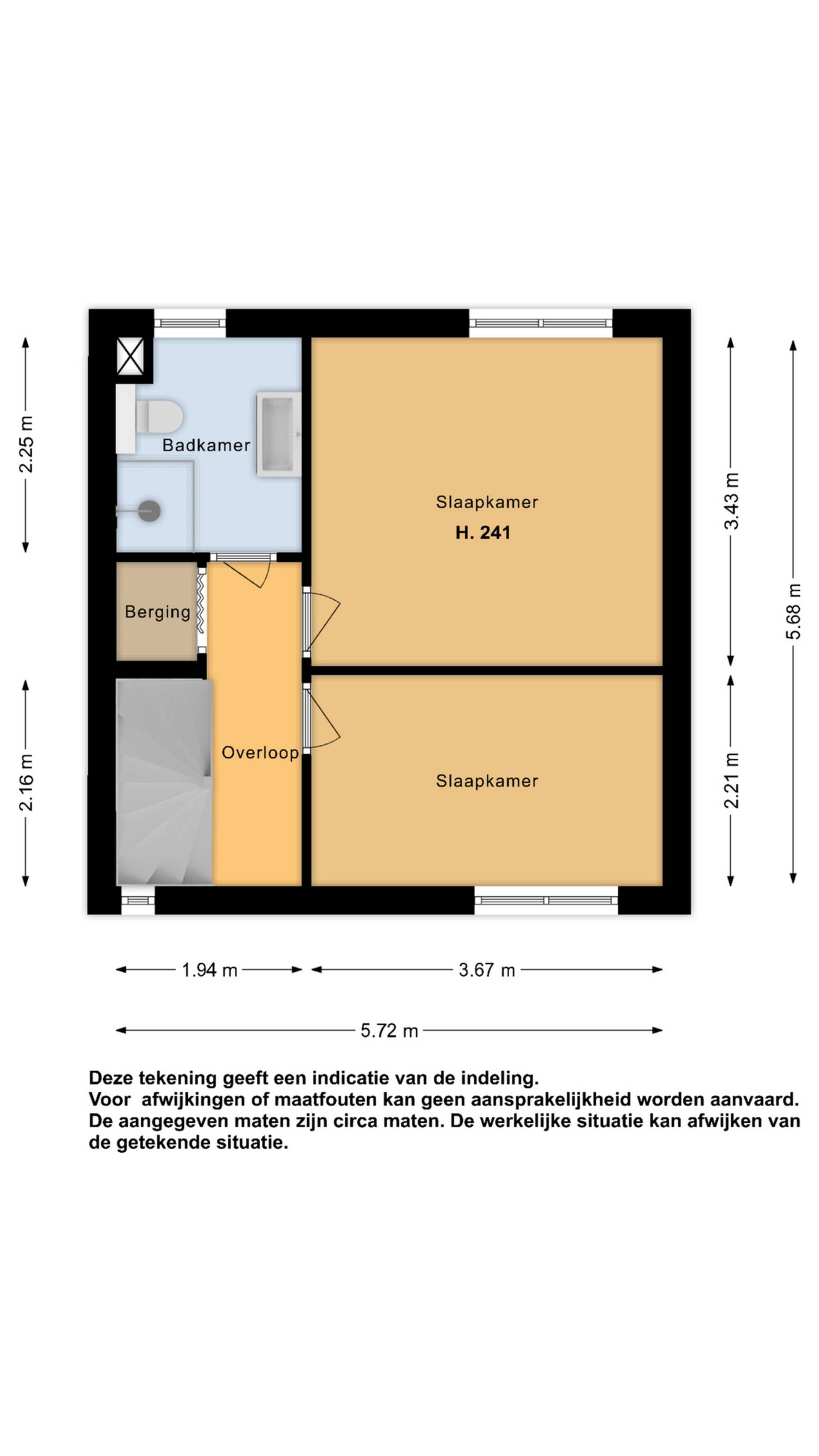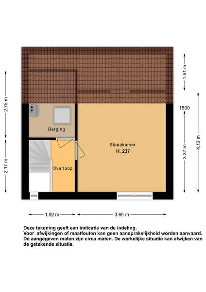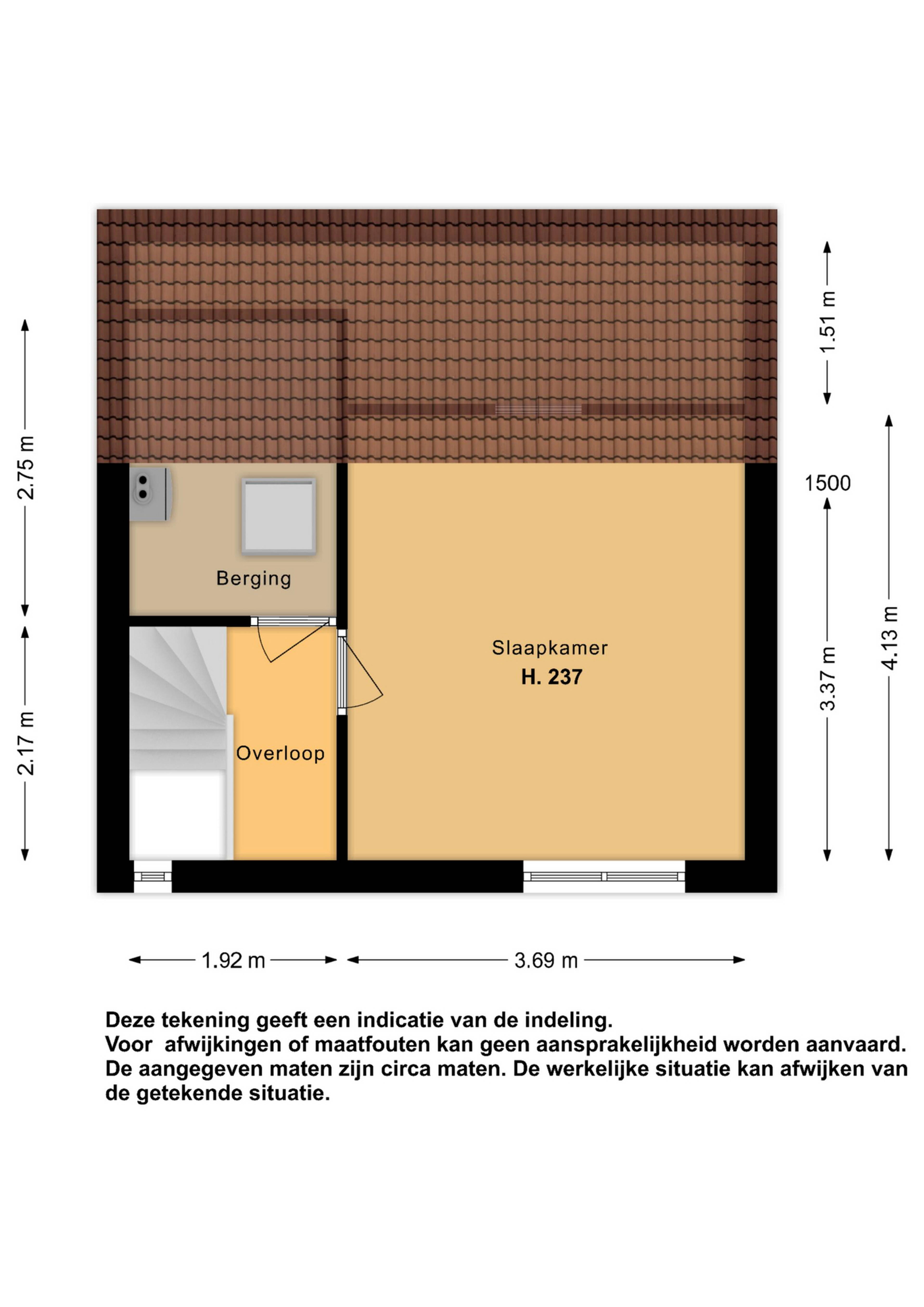 1e verdieping: op de 1e etage zijn 2 slaapkamers van verschillende afmetingen aanwezig. Door de recht opgetrokken wanden heeft u veel ruimte tot uw beschikking. Samen met de slaapkamer op zolder kunt u in twee slaapkamers prima een 2-persoonsbed plaatsen.