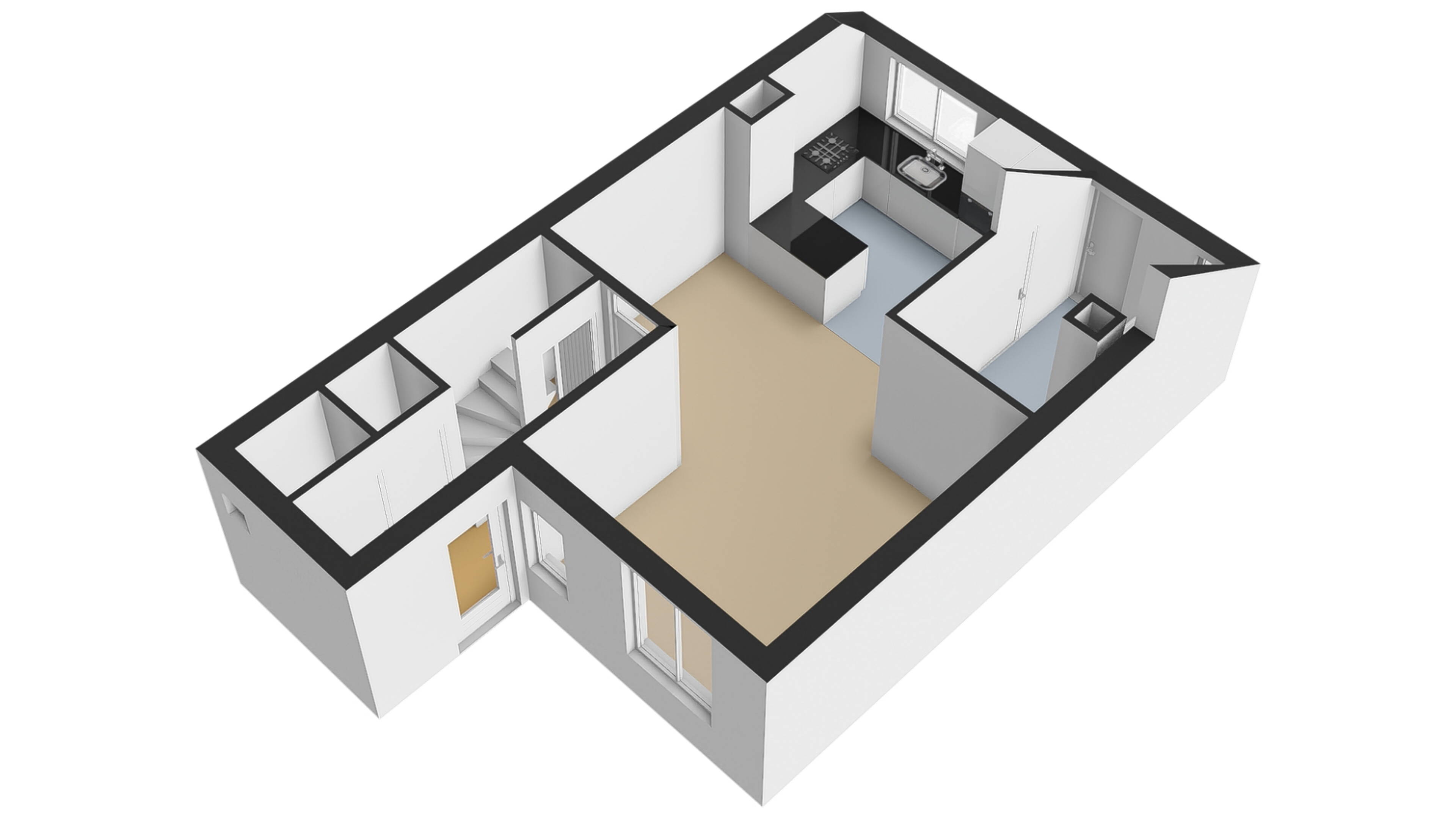 Vanuit de hal kunt u de Z-vormige woonkamer bereiken. Door de grote raampartij aan de voorzijde van de woning heeft u veel lichtinval in de woning. U heeft hier de mogelijkheid om een lekkere loungebank te plaatsen. Vanuit de bank heeft u dan fijn zicht op de rustige straat aan de voorzijde. Aan de achterzijde van de woning treft u de open keuken.
