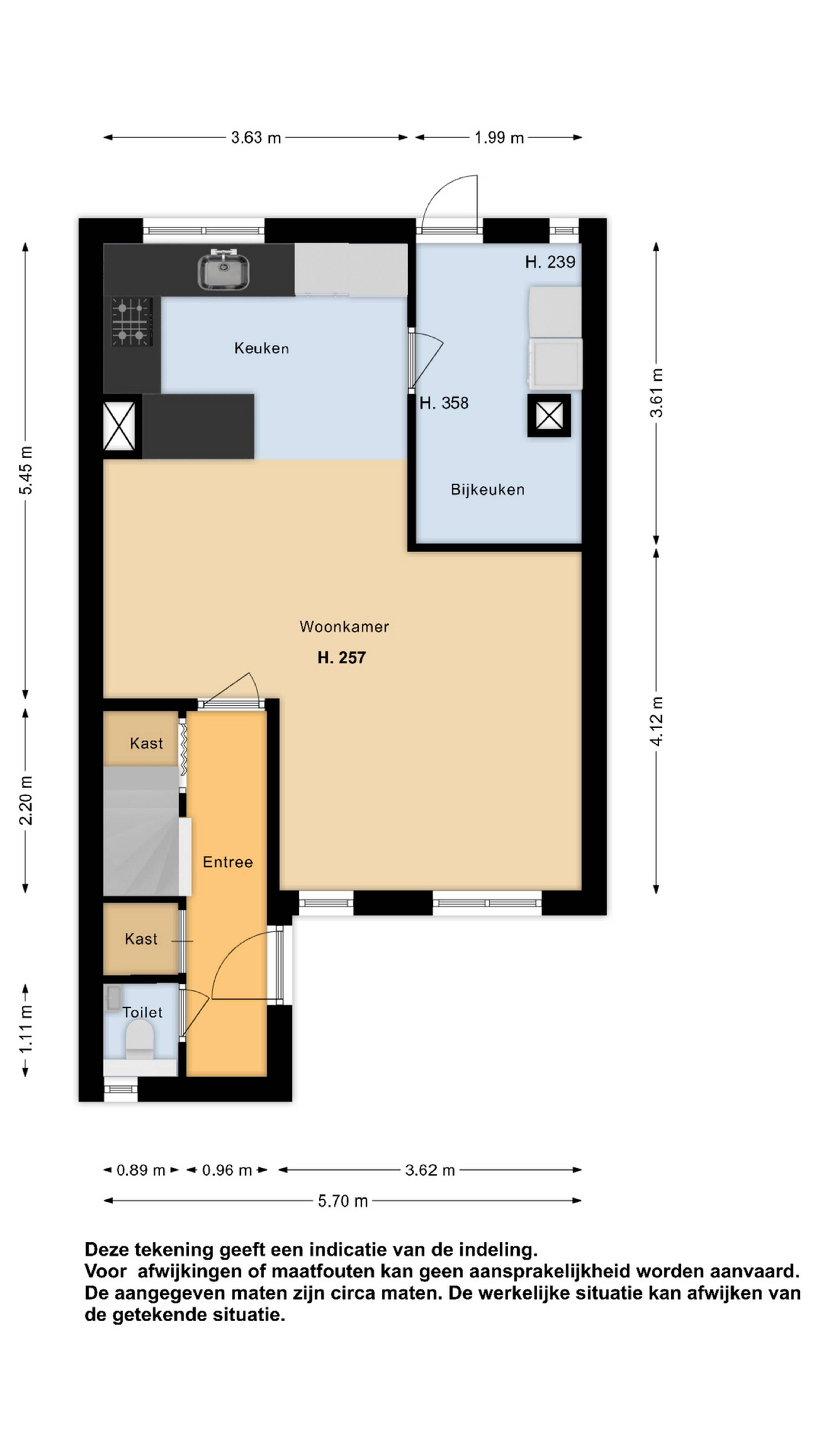 Begane grond: via de zijentree komt u in de hal met toegang tot meterkast, moderne toiletruimte met hangcloset en fonteintje en de trapopgang naar de 1e verdieping.