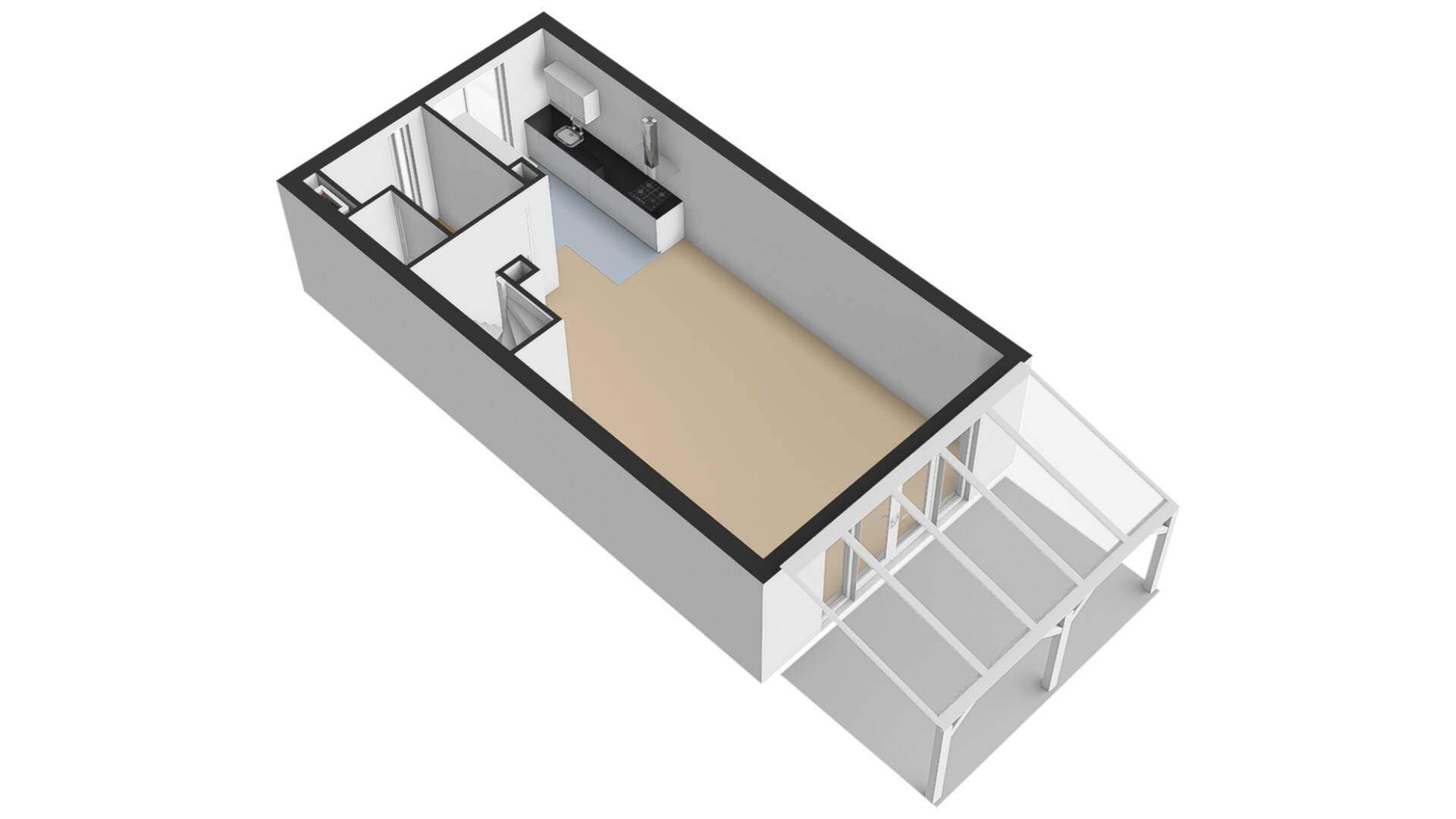 De straatgerichte keuken is aan beide zijden van de ruimte geplaatst en in een lichte kleurstelling uitgevoerd en afgewerkt met een fraai granieten werkblad. De keuken is voorzien van een 5 pits gaskookplaat, afzuigkap, vaatwasser, combimagnetron, koelkast en vriezer. Daarnaast heeft u voldoende kastruimte tot uw beschikking. Naast de keuken kunt u prima een eettafel plaatsen, waardoor u een woon/leefkeuken kunt creëren.