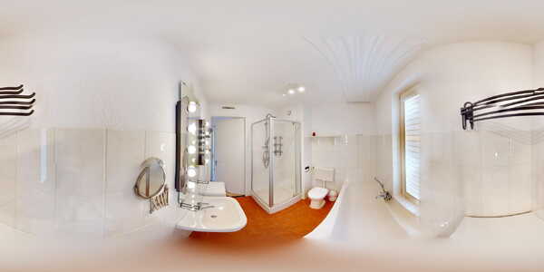 De keurig afgewerkte badkamer is betegeld in een lichte kleurstelling en voorzien van een ligbad, douchecabine, closet en wastafel. Plezierig is ook het raam dat u heerlijk open kunt doen en geeft ook fijn daglicht in de badkamer.