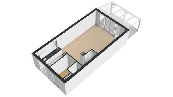 De uitgebouwde woonkamer heeft ruime afmetingen en via de openslaande tuindeuren heeft u een fraaie kijk op de achtergelegen tuin. De vloer is voorzien van een moderne laminaatvloer. De aanbouw aan de achterzijde van de woning zorgt voor veel lichtinval én door de vormgeving van deze living kunt u op diverse wijzen uw interieur inrichten. Bovendien is deze woning uitgevoerd met hete lucht verwarming, waardoor u nergens radiatoren vindt en dus alle ruimte volledig kunt benutten. In deze woonkamer heeft u voor uw overtollige spulletjes een fijne trapkast tot uw beschikking. Vanuit de woonkamer heeft u toegang naar de 1e verdieping.